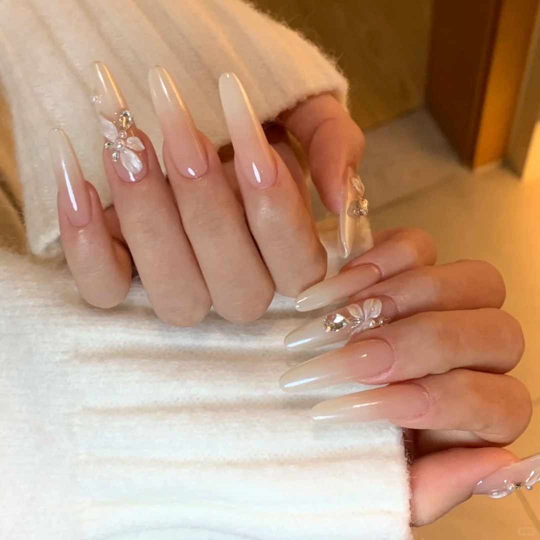纯手工穿戴甲立体冰花气质裸色渐变白月光清冷感甲片温柔轻奢美甲