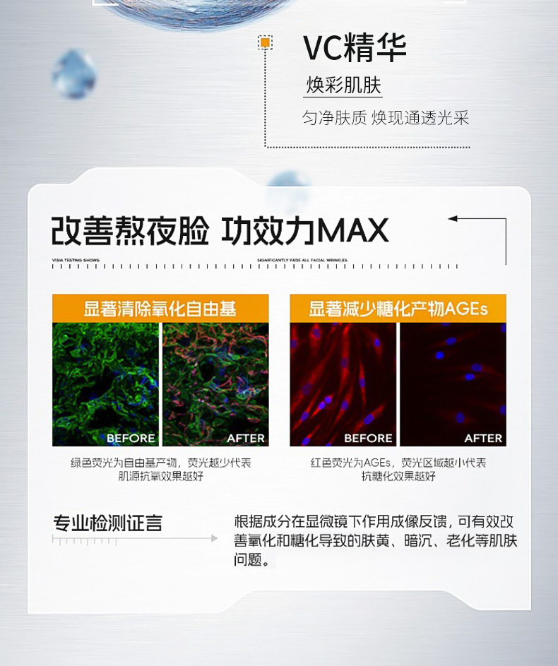 化妆品功效 抗氧化,补水保湿,提亮肤色,紧致,改善暗沉,改善暗哑,抗初老,抗光老