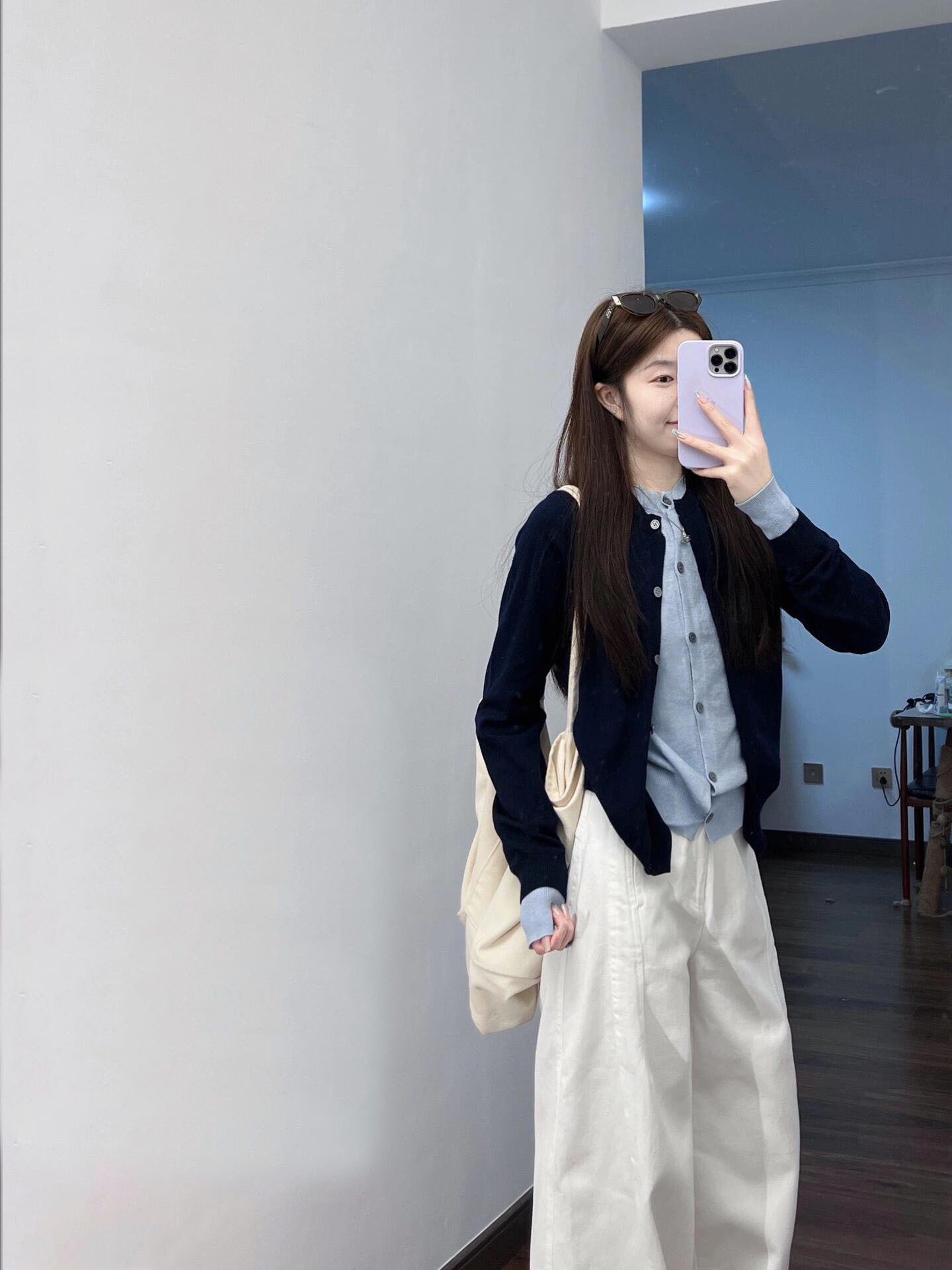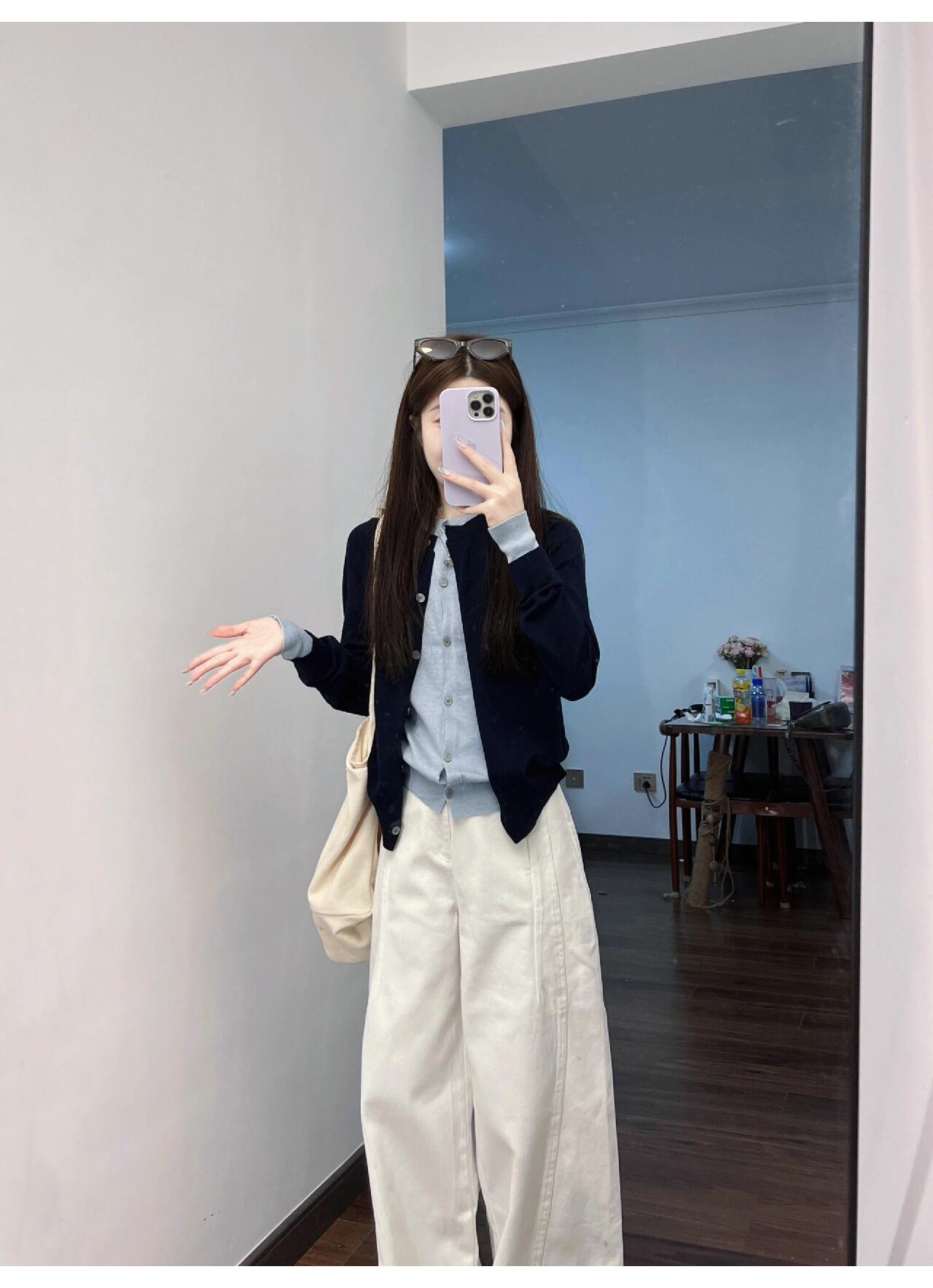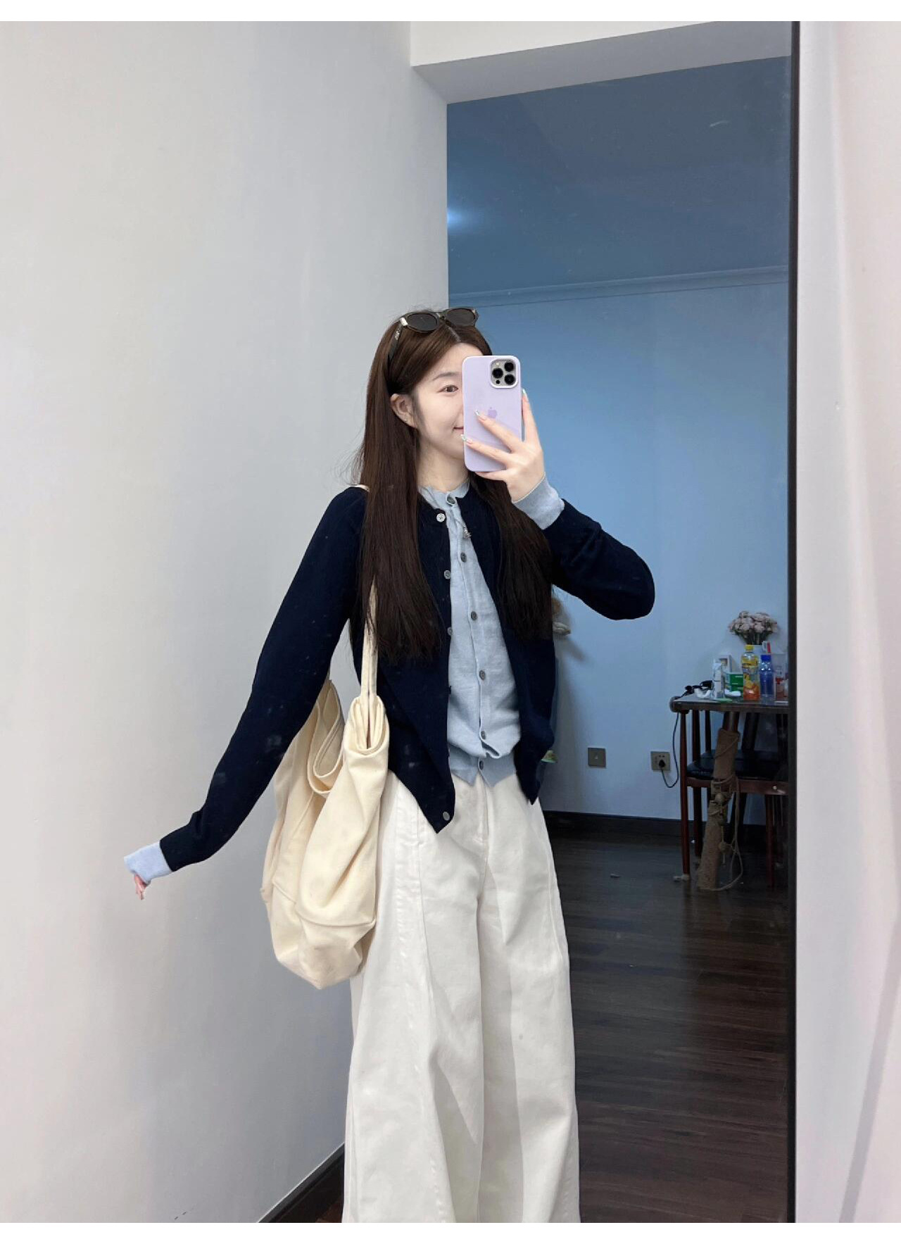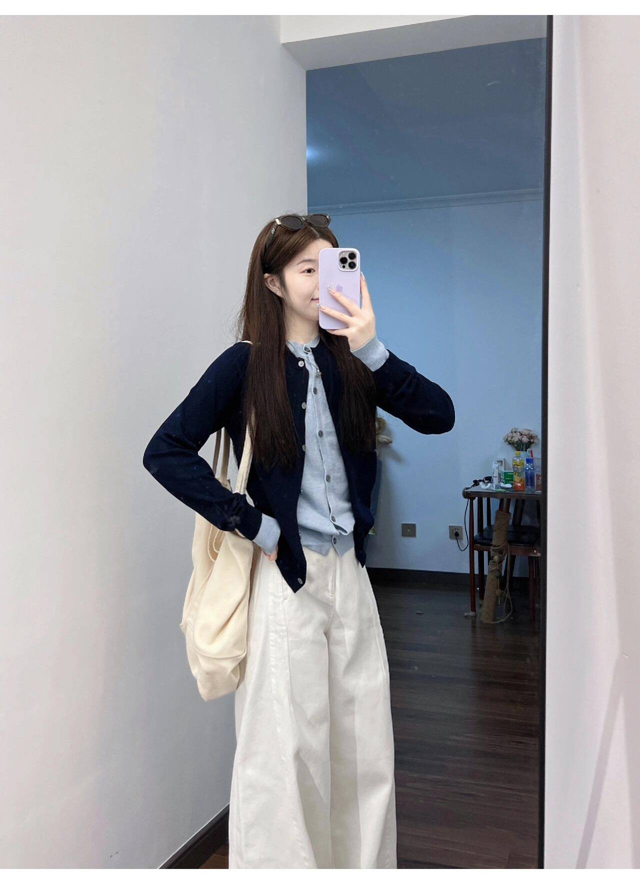 韩系穿搭圆领针织开衫女早秋季2025新款宽松显瘦百搭毛衣上衣外套
