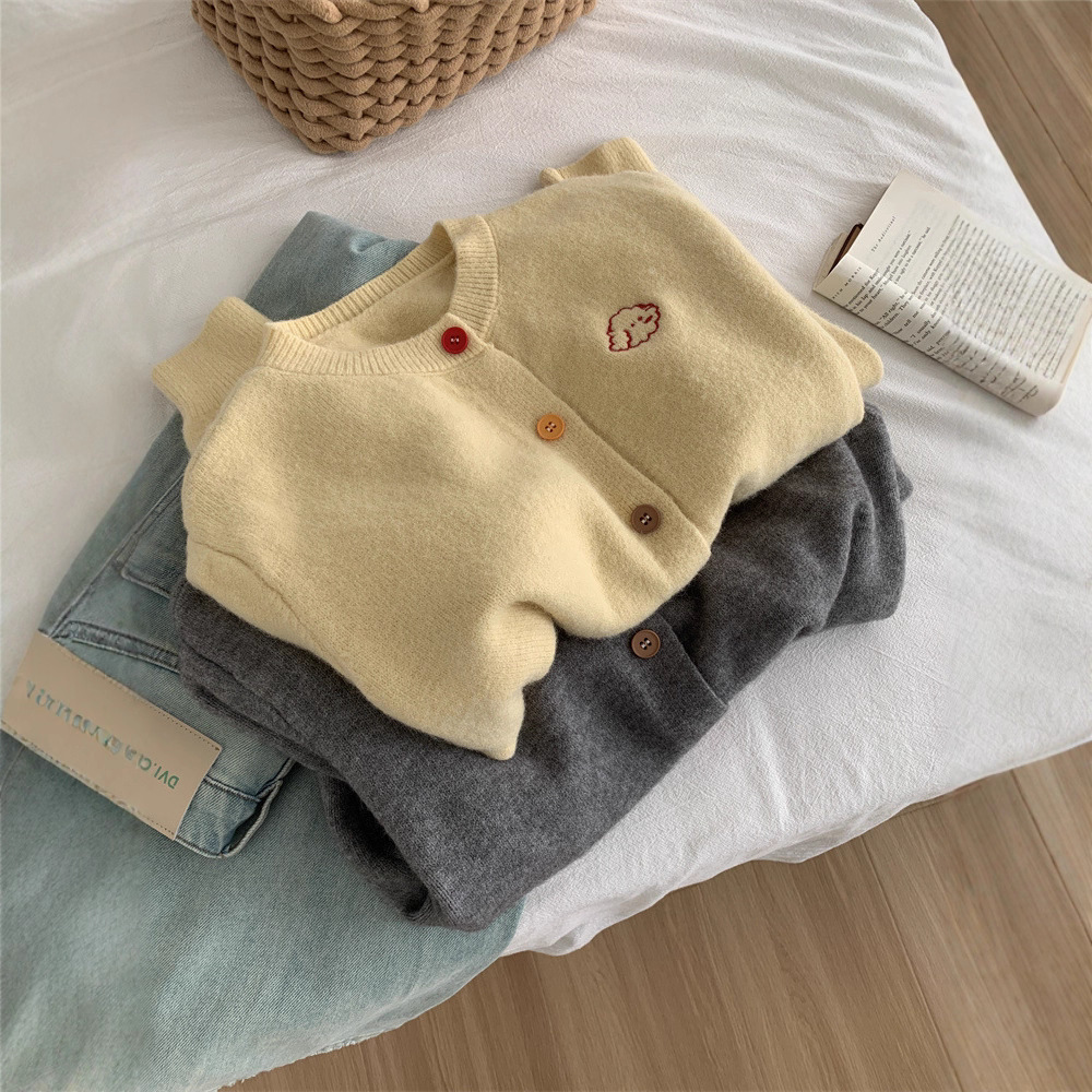 温柔复古减龄小狗刺绣彩扣圆领针织开衫女2025秋季小个子毛衣外套