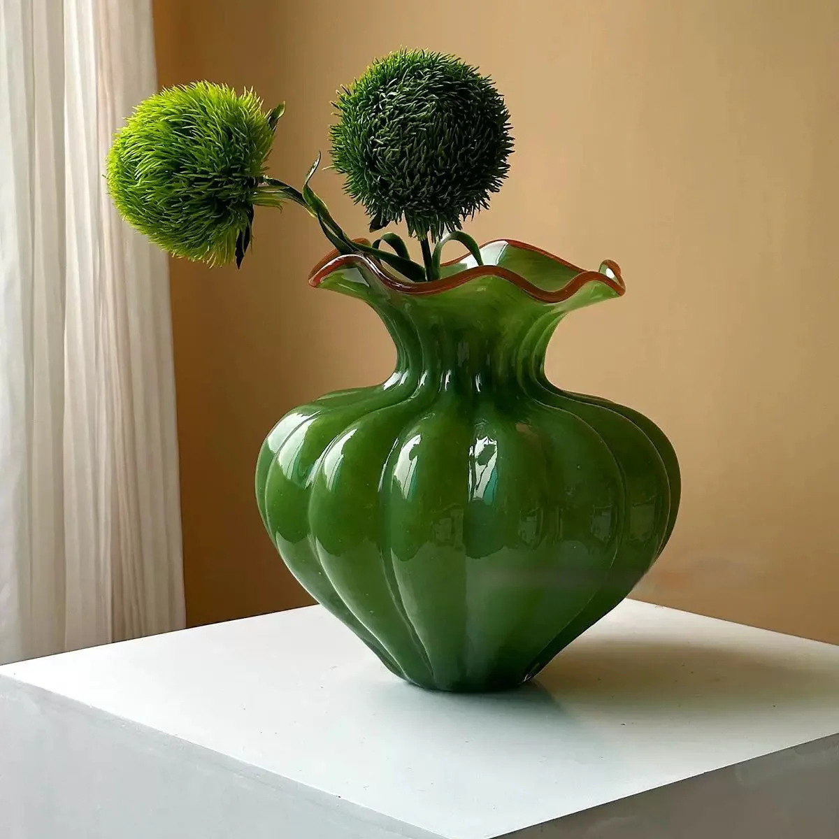 北欧手工波浪口花边糖果色南瓜琉璃花瓶高级感样板间客厅家居花瓶