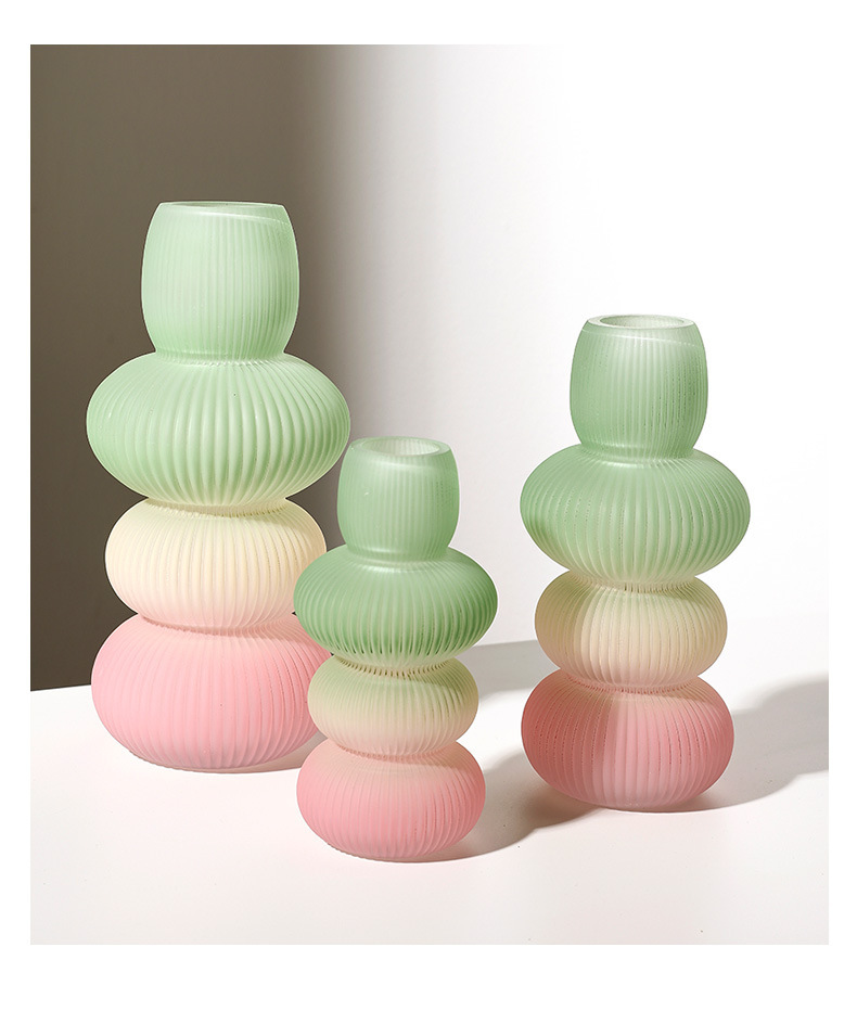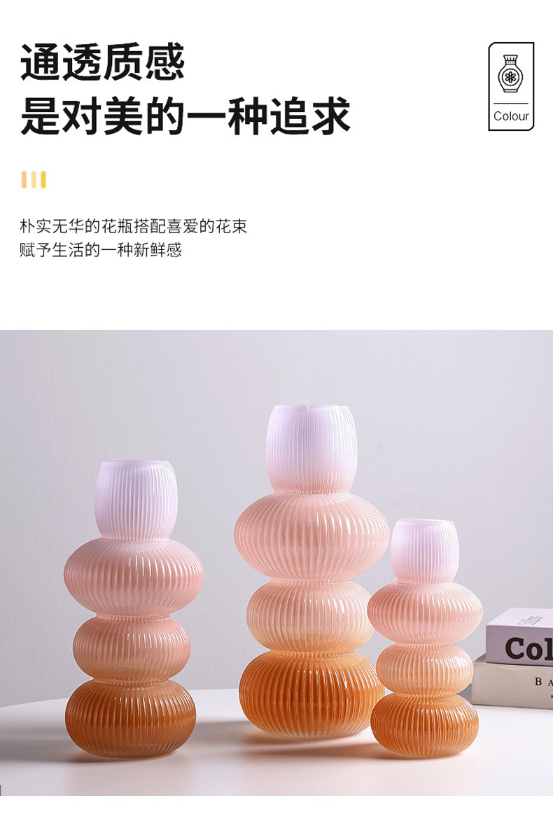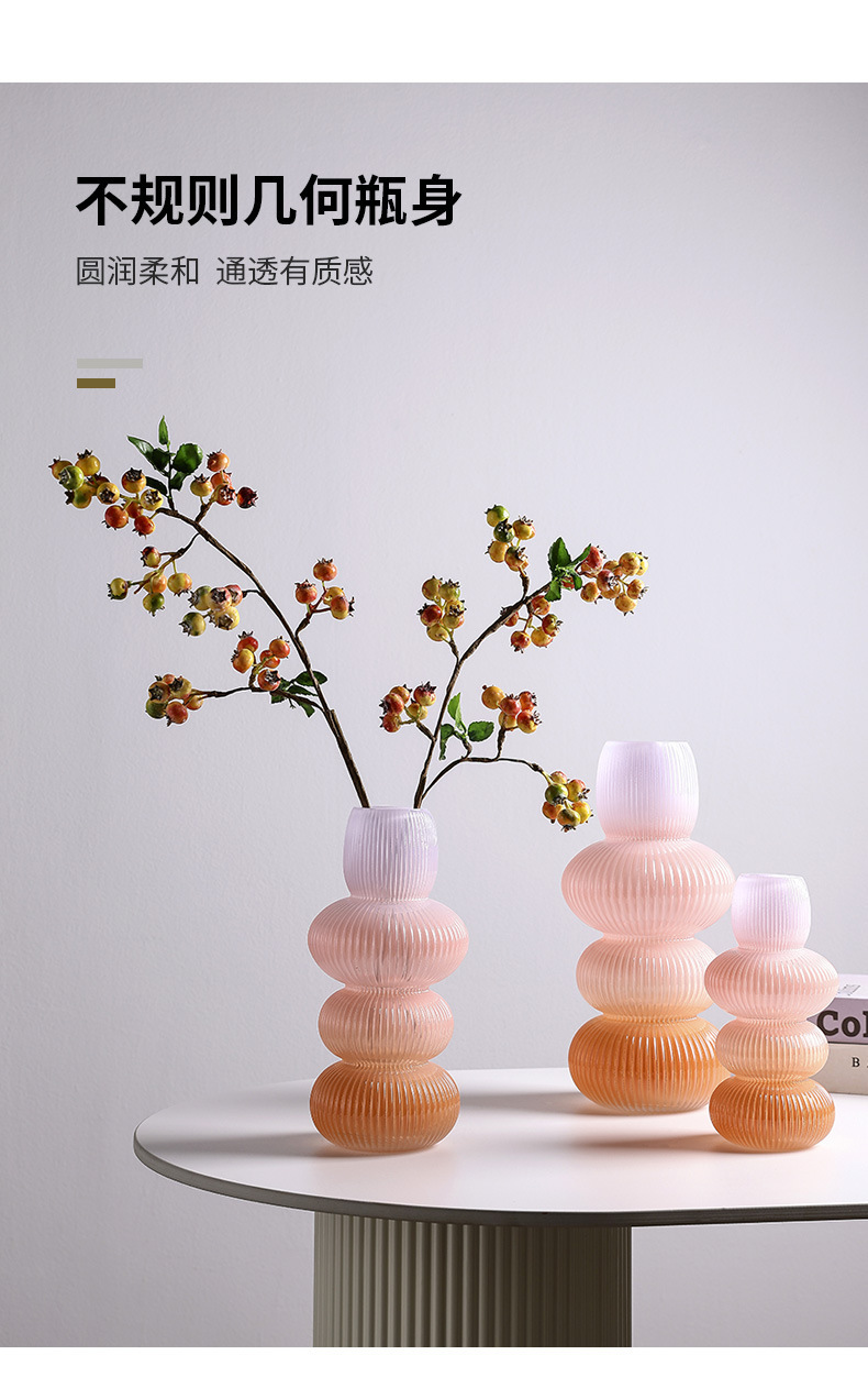 跨境鹅卵石喷色彩色玻璃花瓶高颜值客餐厅花瓶插花高级感装饰摆件