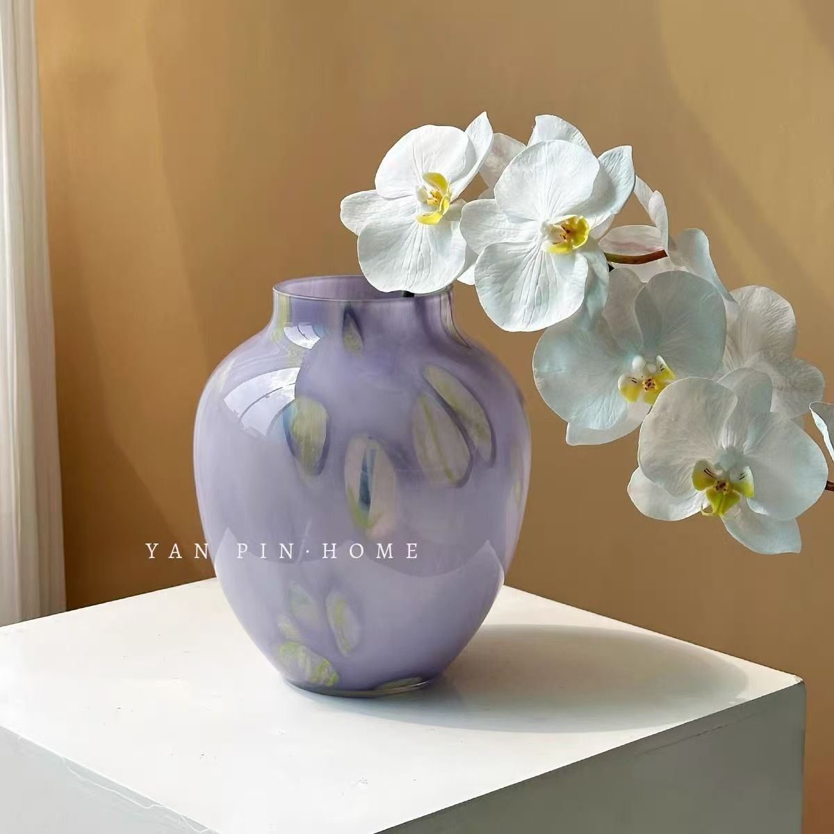 フレンチ香芋紫ガラス花瓶中古高級感客レストラン花瓶生け花高級感装飾花瓶置物