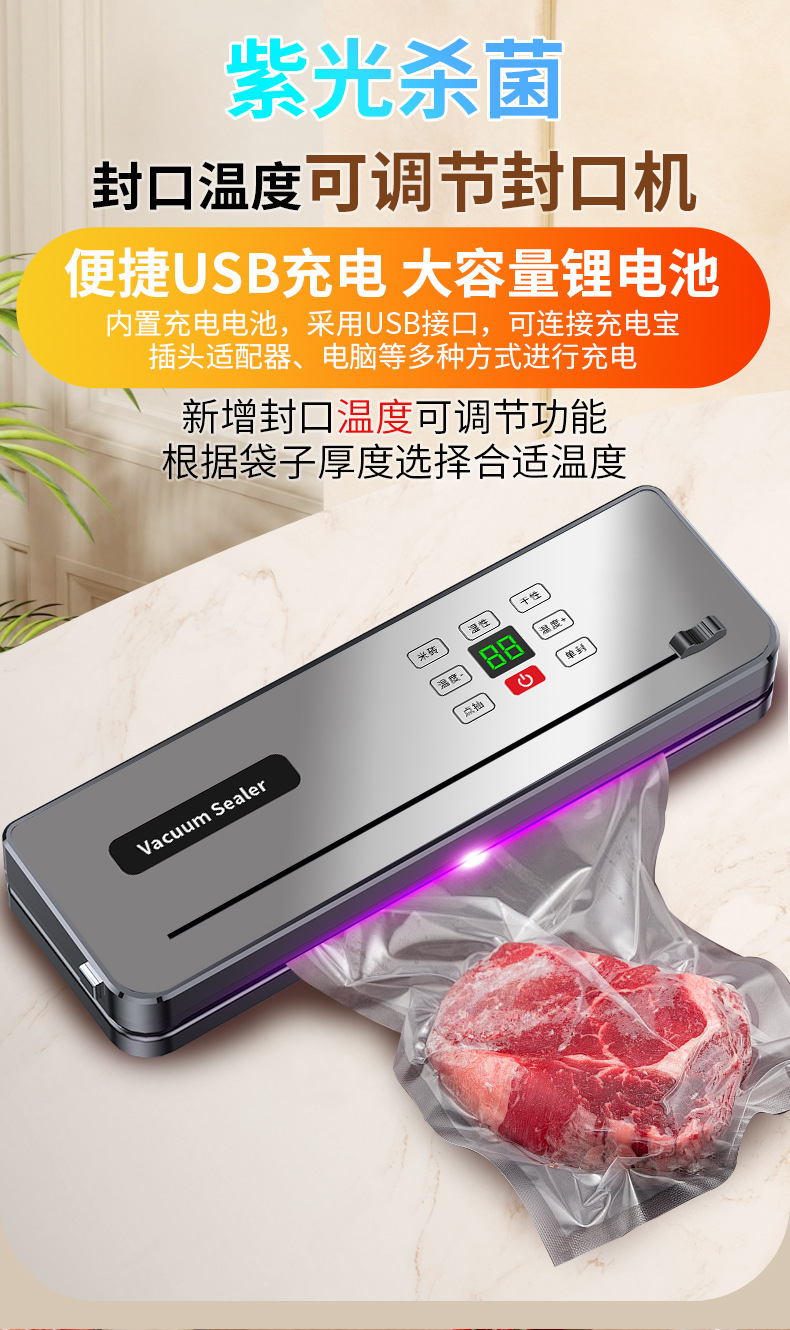 跨境自动充电真空封口机食品包装机保鲜机厨房抽真空塑封家用商用