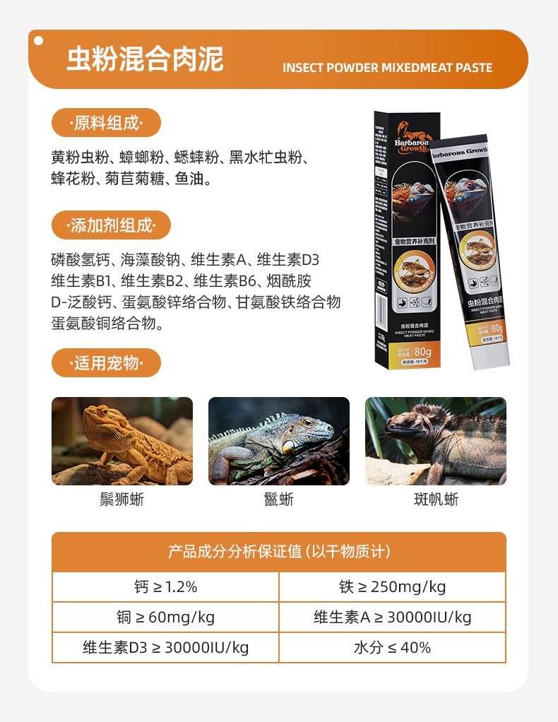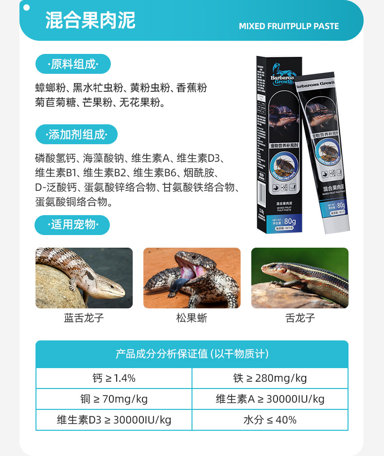 爬宠昆虫泥果泥睫角鬃狮蓝舌蜥蜥蜴蓝色饲料守宫虫泥保鲜虫粮饲料