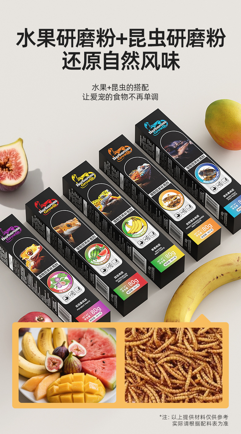 爬宠昆虫泥凝胶粮豹纹睫角守宫鬃狮蓝舌饲料蜥蜴食物保鲜虫粮果泥