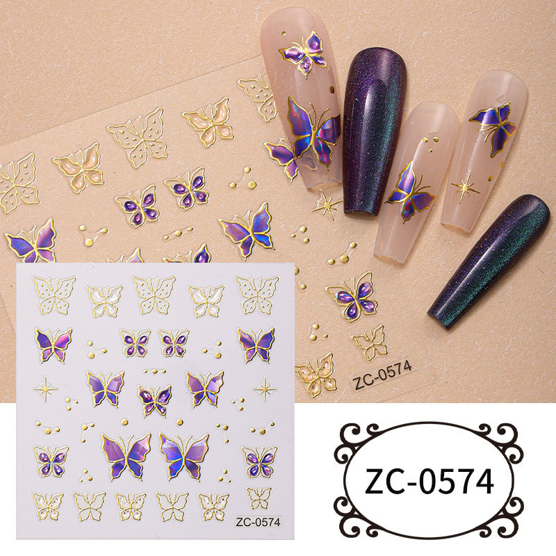 正祥夏日新款5D软胶美甲贴纸浮雕蝴蝶花朵海洋贝壳光仙女系指甲贴
