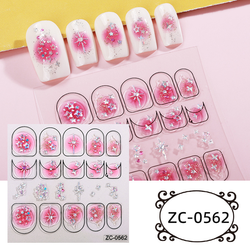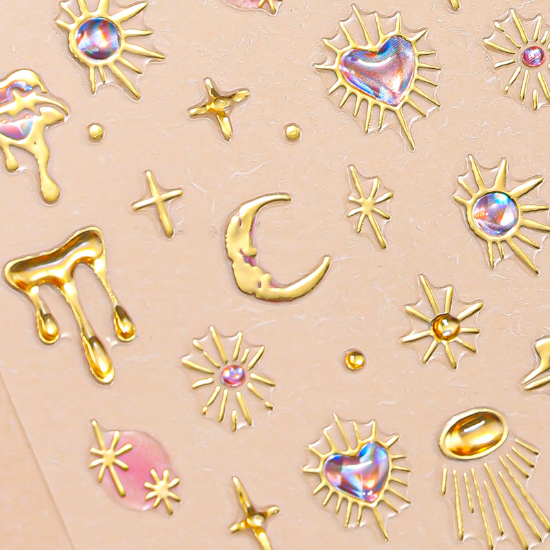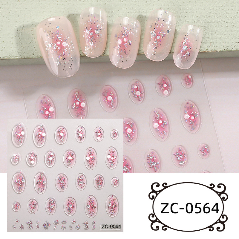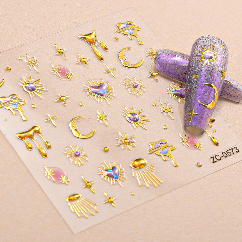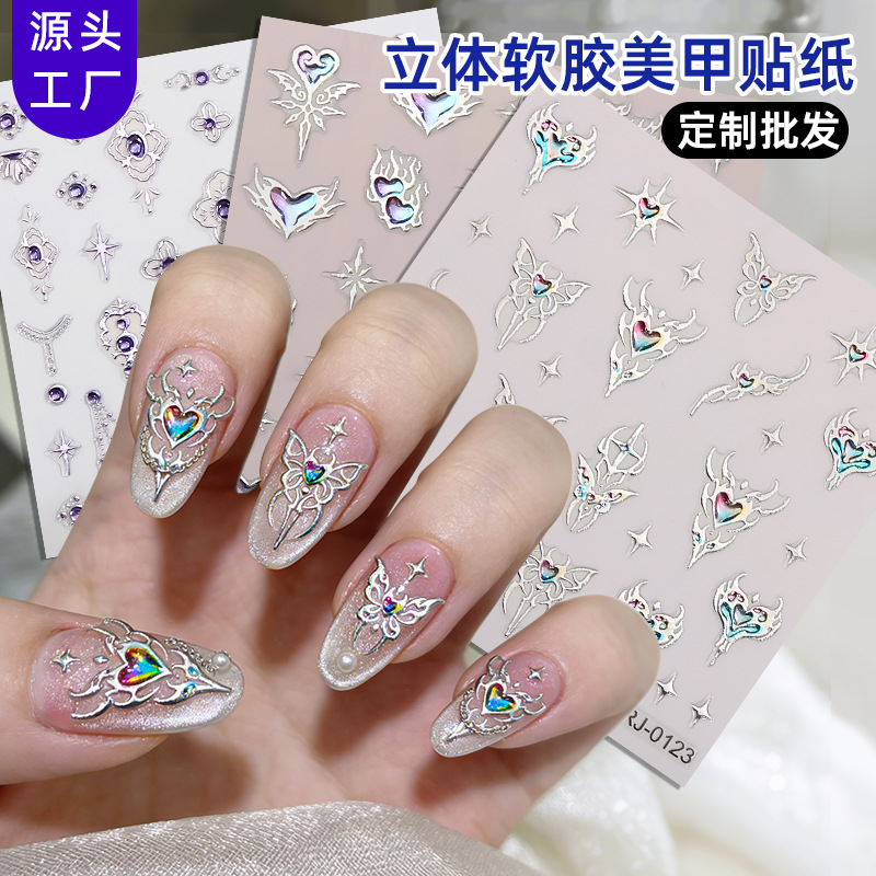 正祥跨境新款DIY软胶贴花5d美甲贴纸浮雕爆闪宝石水晶INS风指甲贴