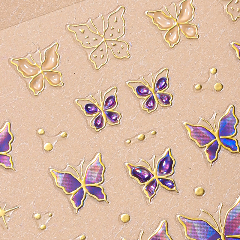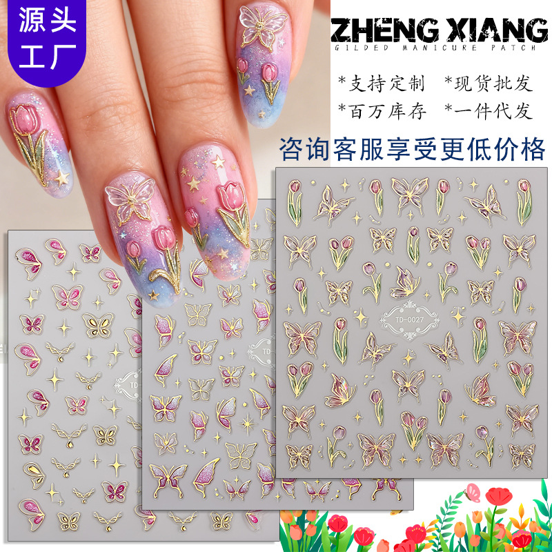 正祥跨境夏日蝴蝶花朵5d软胶美甲贴纸浮雕网红海洋指甲贴一件代发