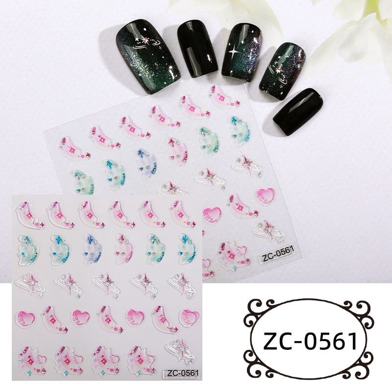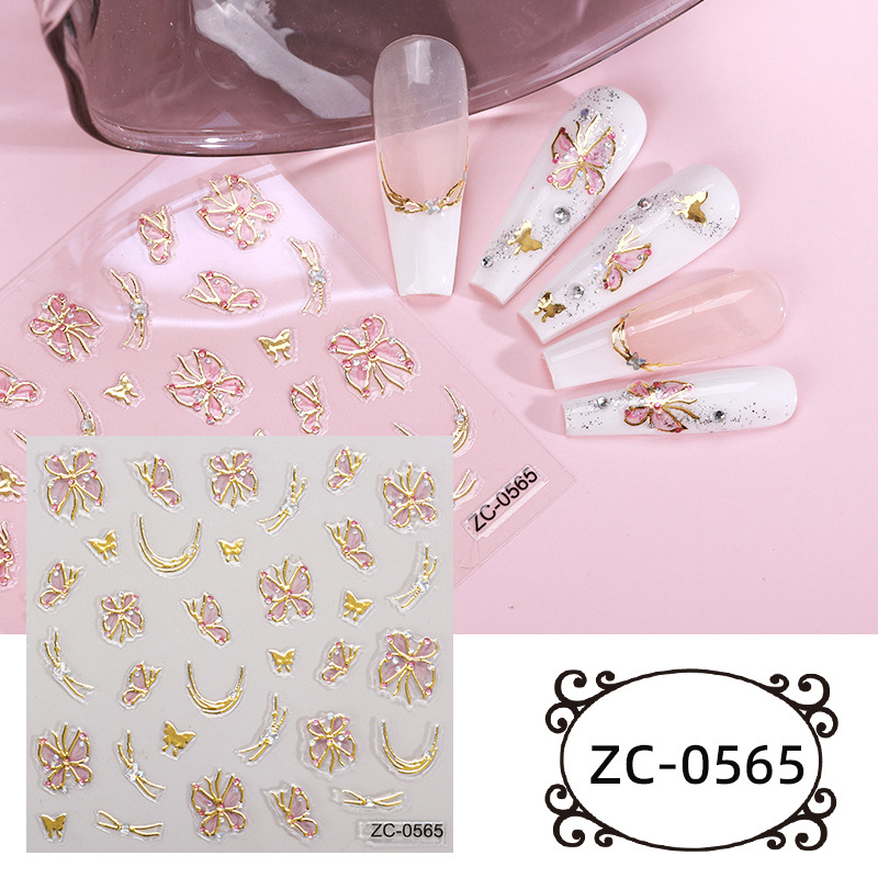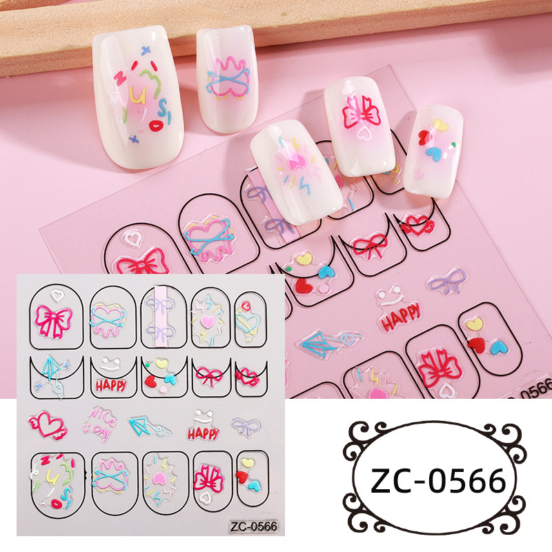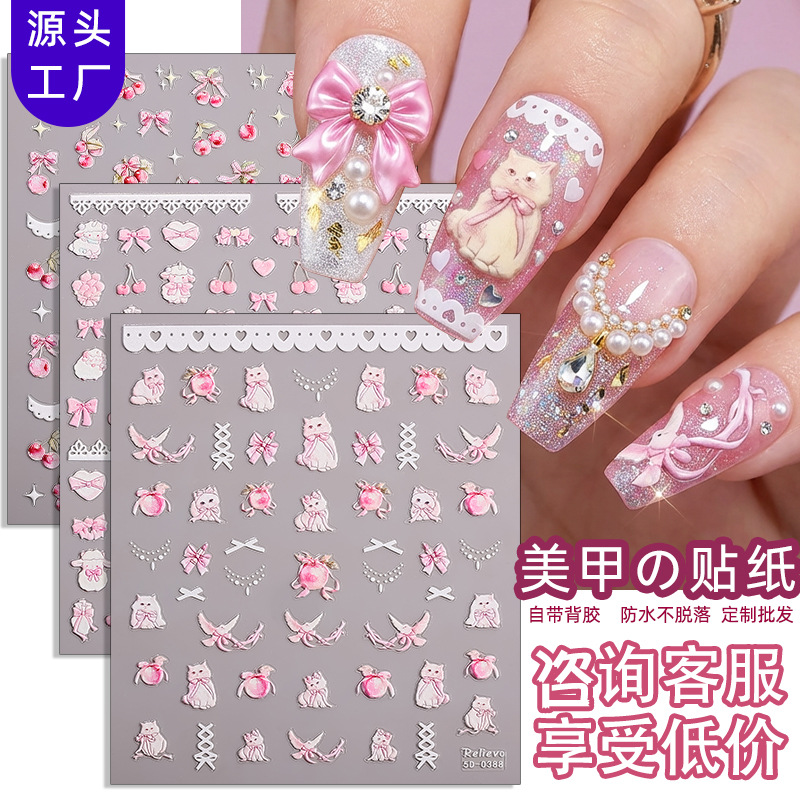 正祥跨境新款花朵蝴蝶结5D美甲贴纸浮雕贴花夏日水果卡通熊指甲贴