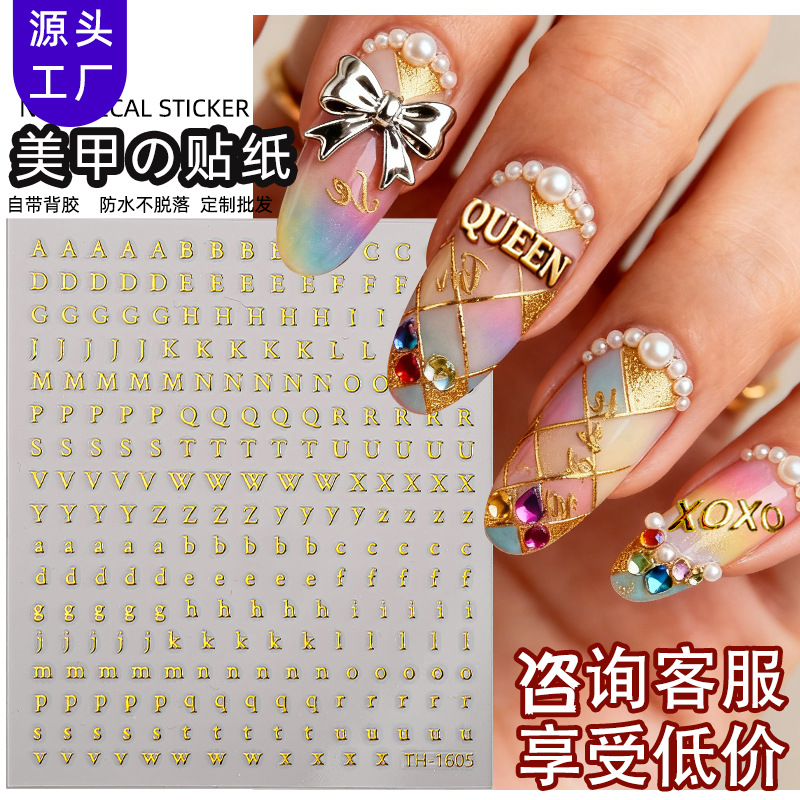 正祥跨境新款简约字母美甲贴纸烫金数字指甲贴网红混搭背胶美甲贴