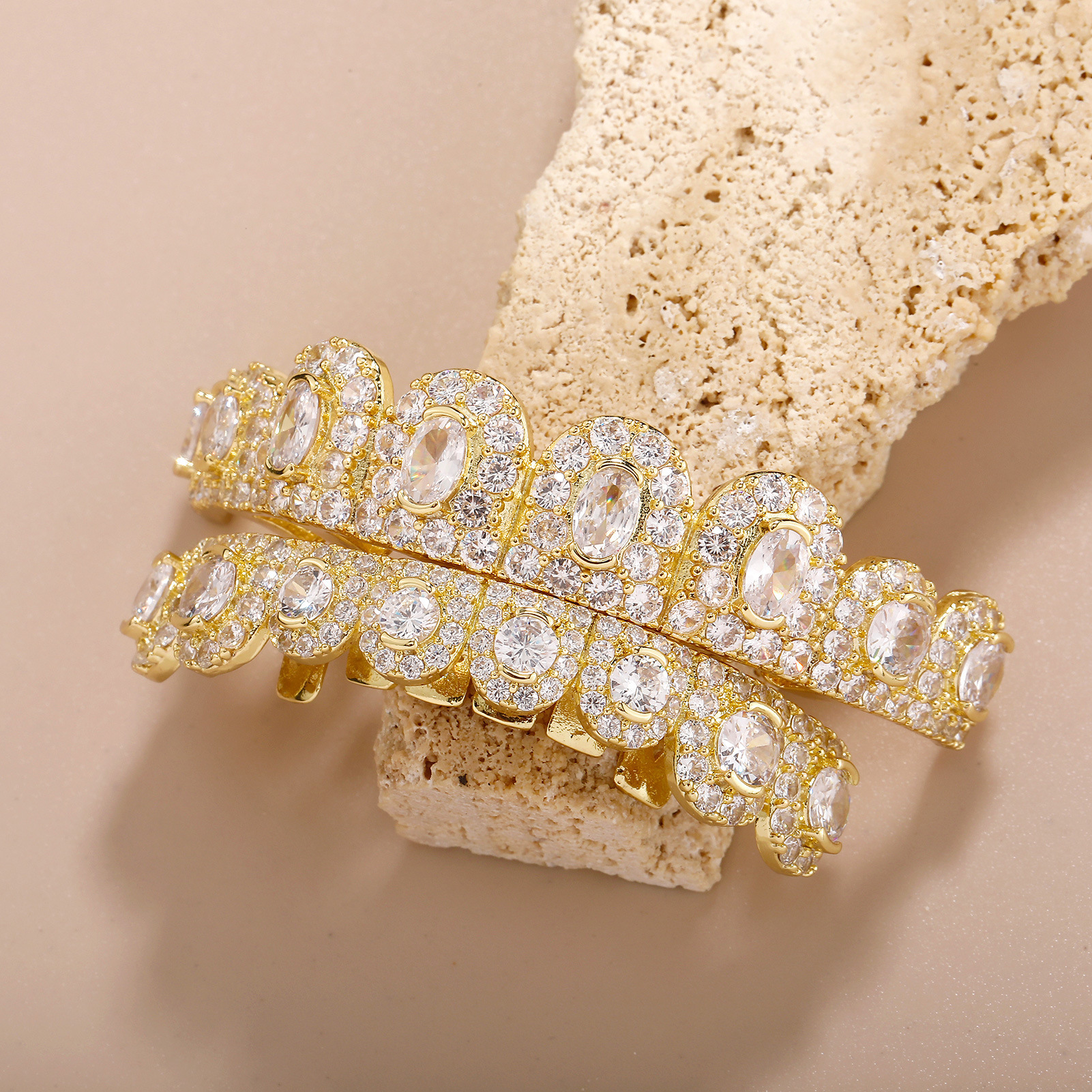 跨境炫彩锆石牙套时尚男说唱金牙GRILLZ亚马逊跨境圣诞爆款锆石