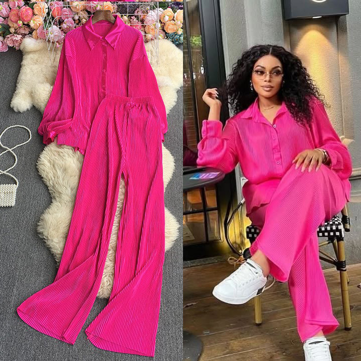 新型欧米ins風ファッションキャンディー色のゆったりとした圧折長袖シャツがゆったりとしています。