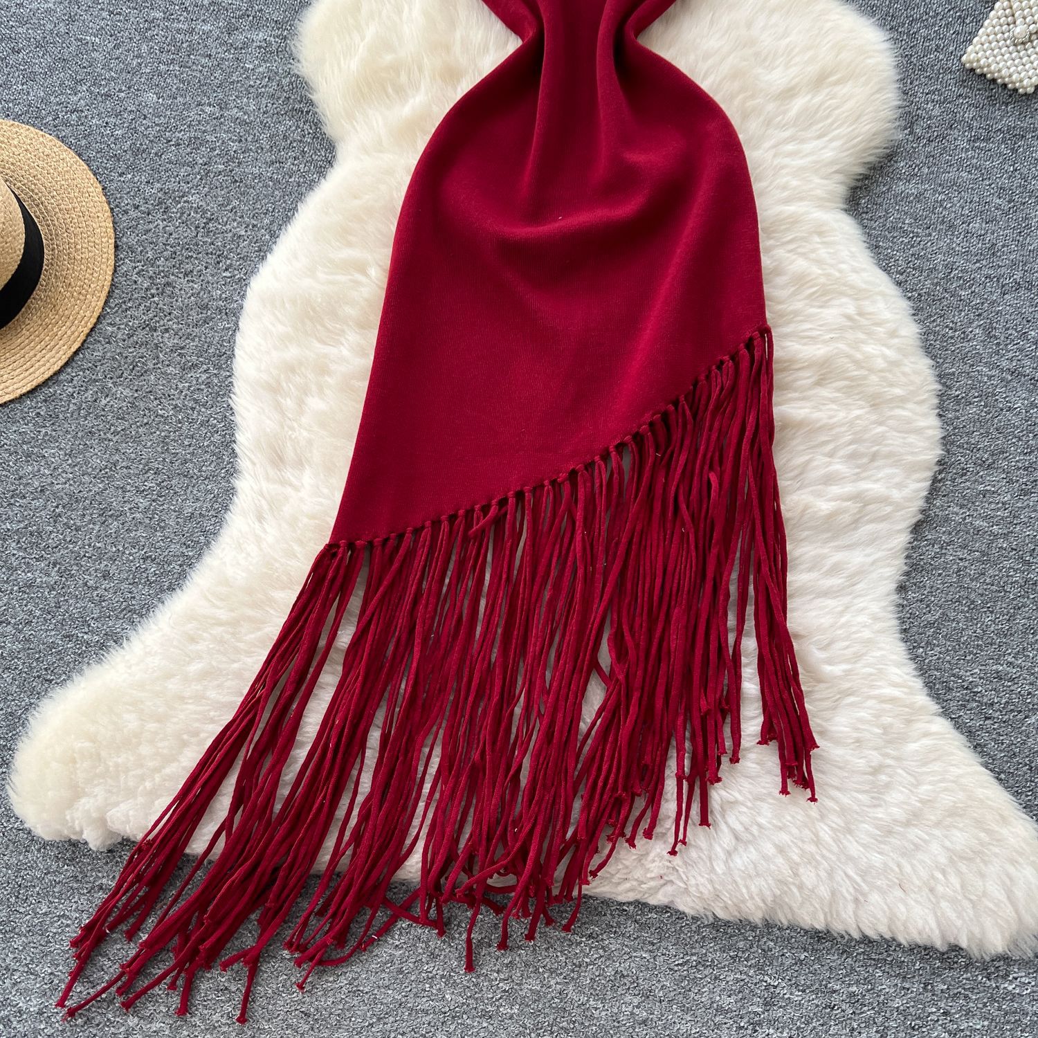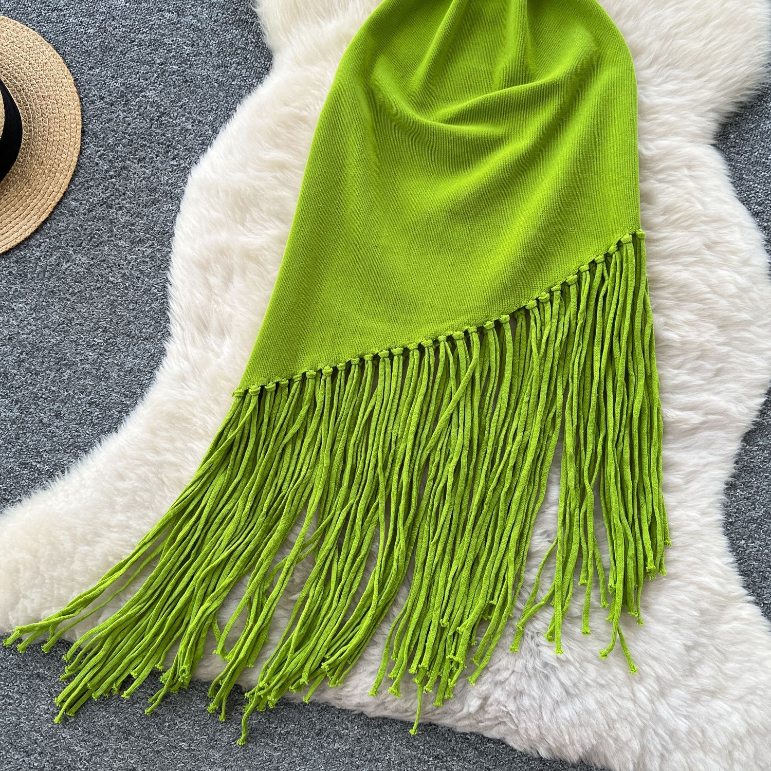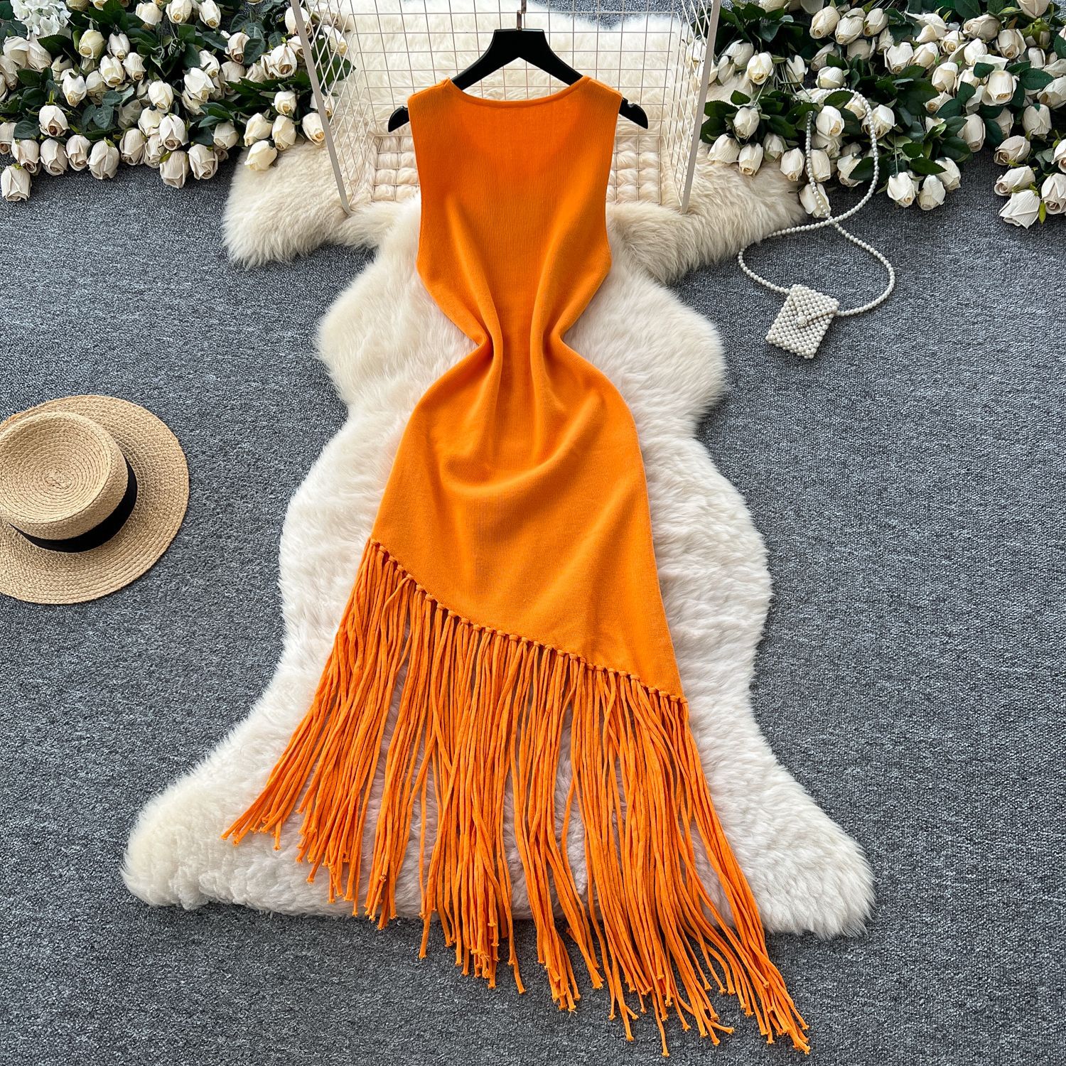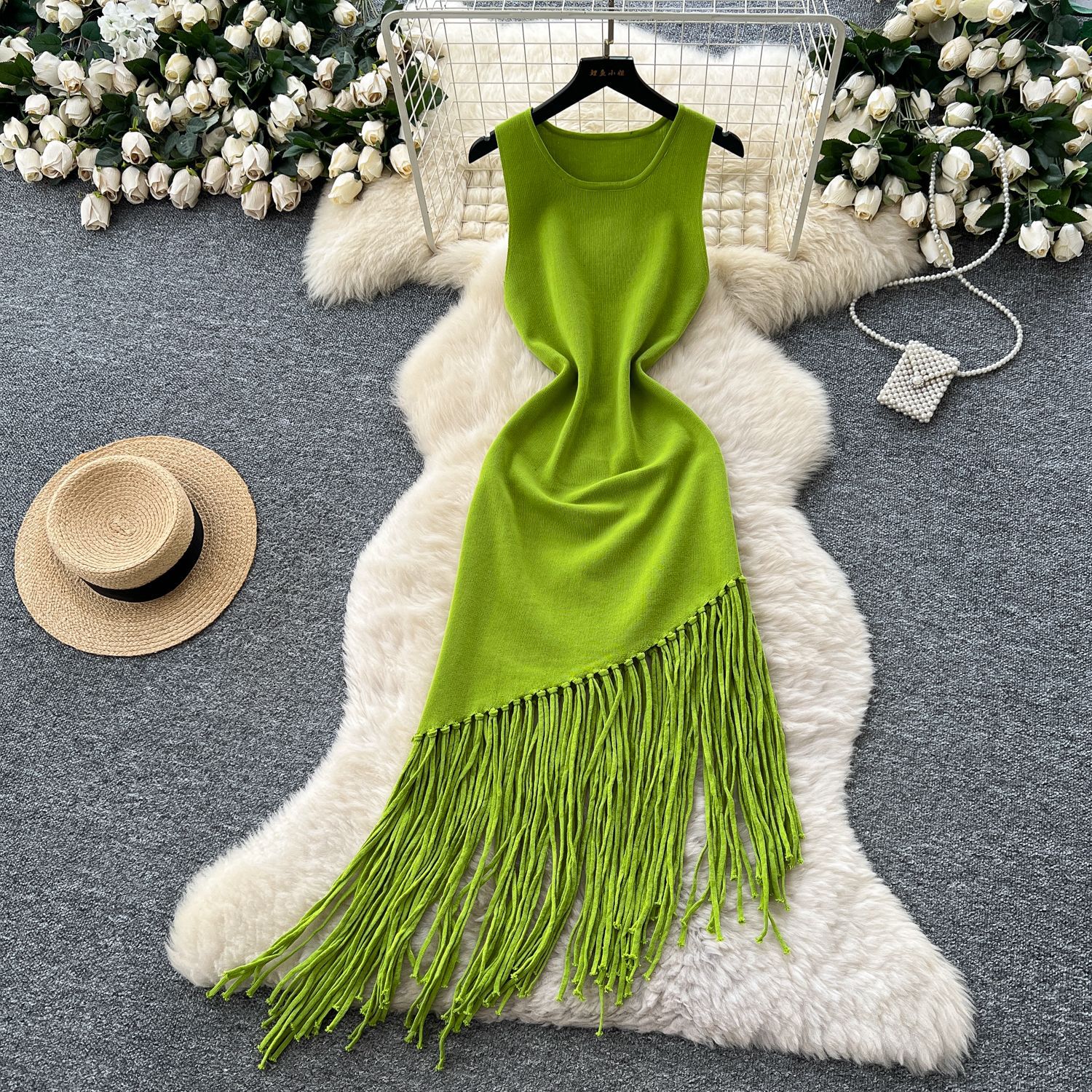 新しいフリンジ付きニットワンピース、アフリカ越境欧米貿易向けレディースフィット感のある伸縮性のあるミドル丈ビーチカバーアップ