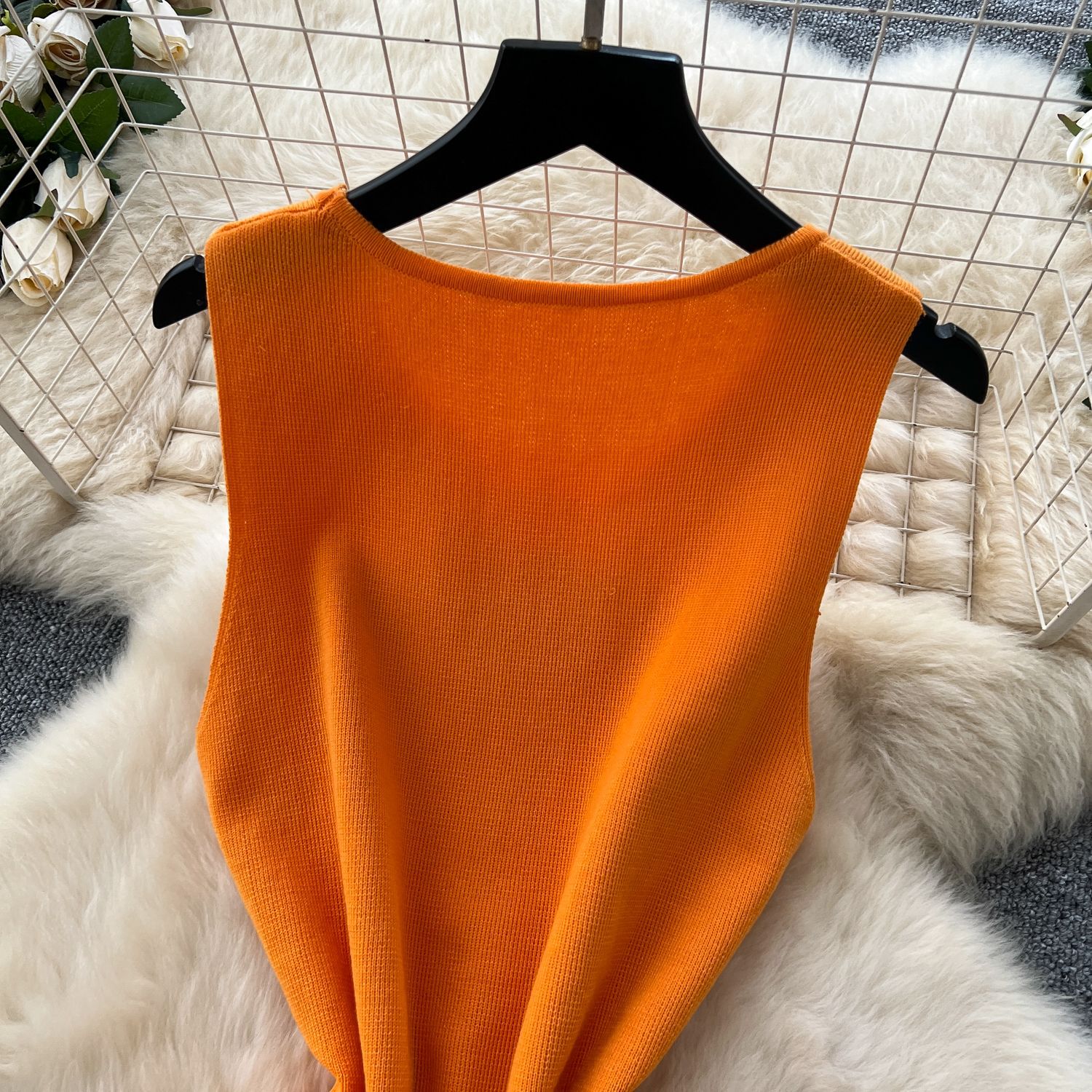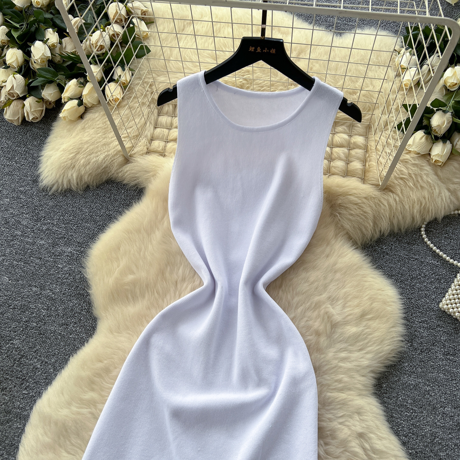 欧米風のシンプルなデザインのノースリーブニットワンピース女性の夏の毛の縁はスリムに見えます。