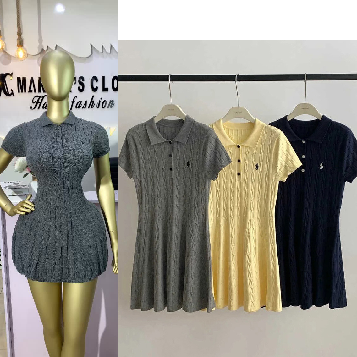 外贸经典款polo学院休闲风夏季麻花纹短袖针织连衣裙短裙女