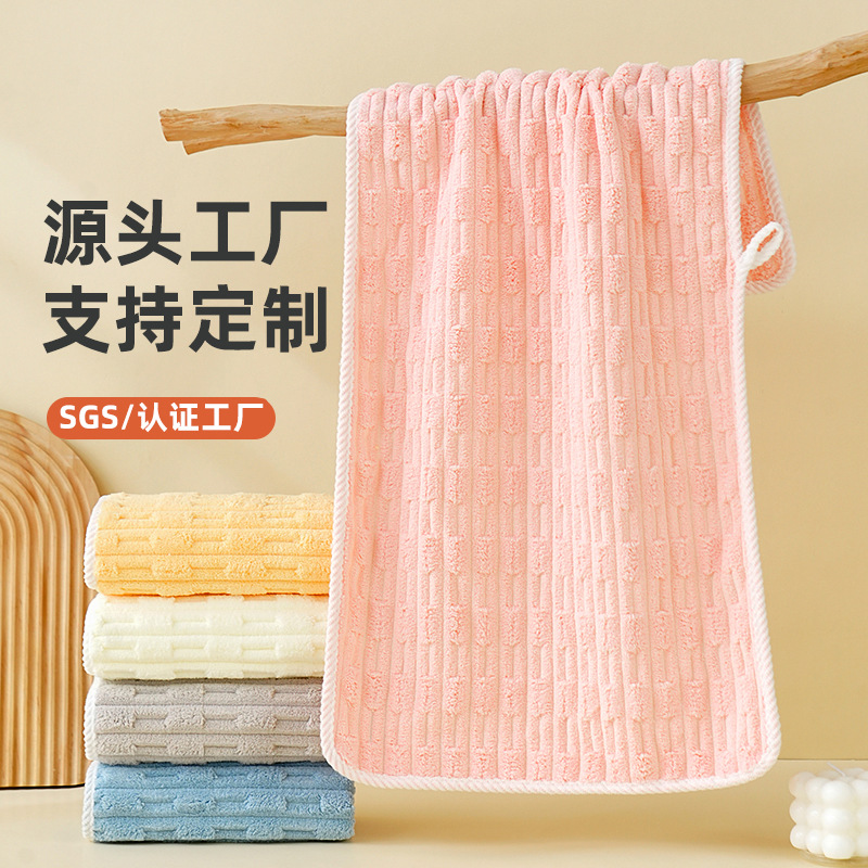 跨境竹节绒毛巾柔软吸水加厚珊瑚绒洗脸毛巾成人男女家用洁面巾