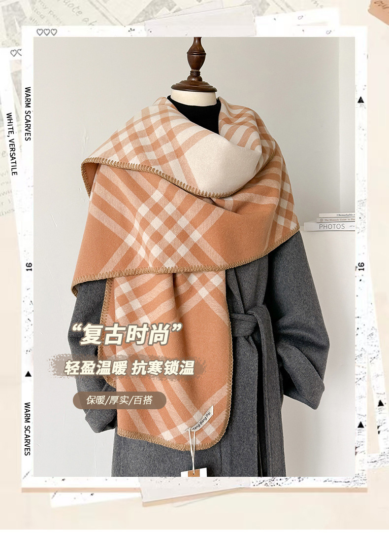 爆款格子围巾女冬季百搭保暖加厚仿羊绒格纹披肩潮轻奢高级感围脖
