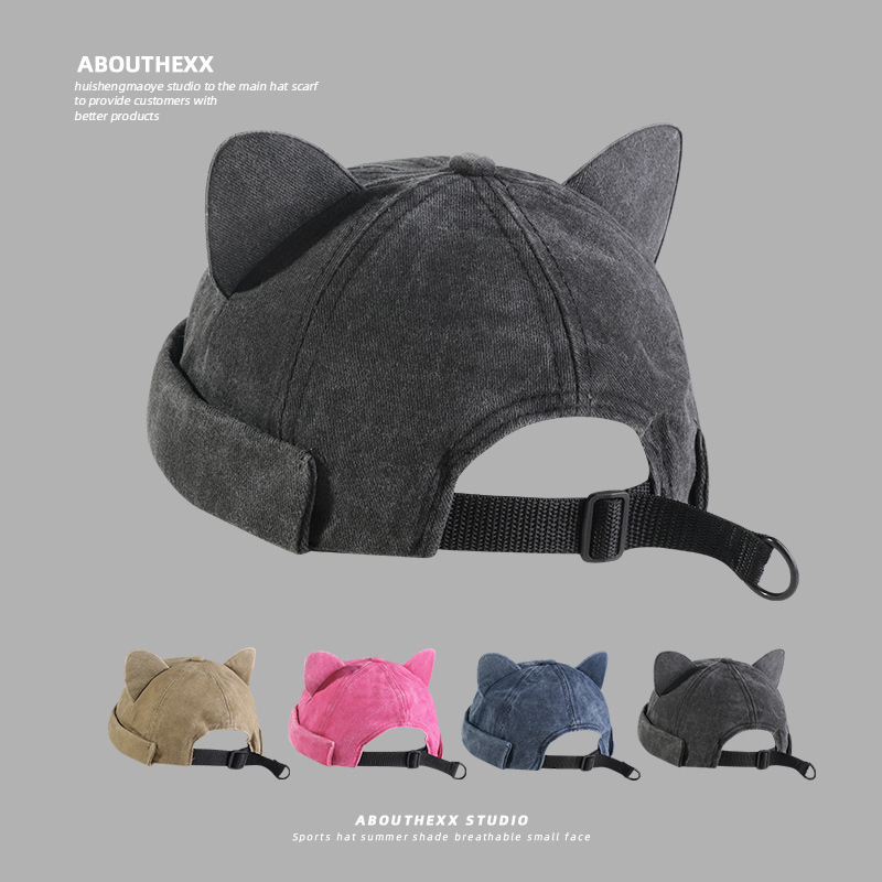 帽子の女性が可愛いです。猫の耳に軒のない帽子があります。