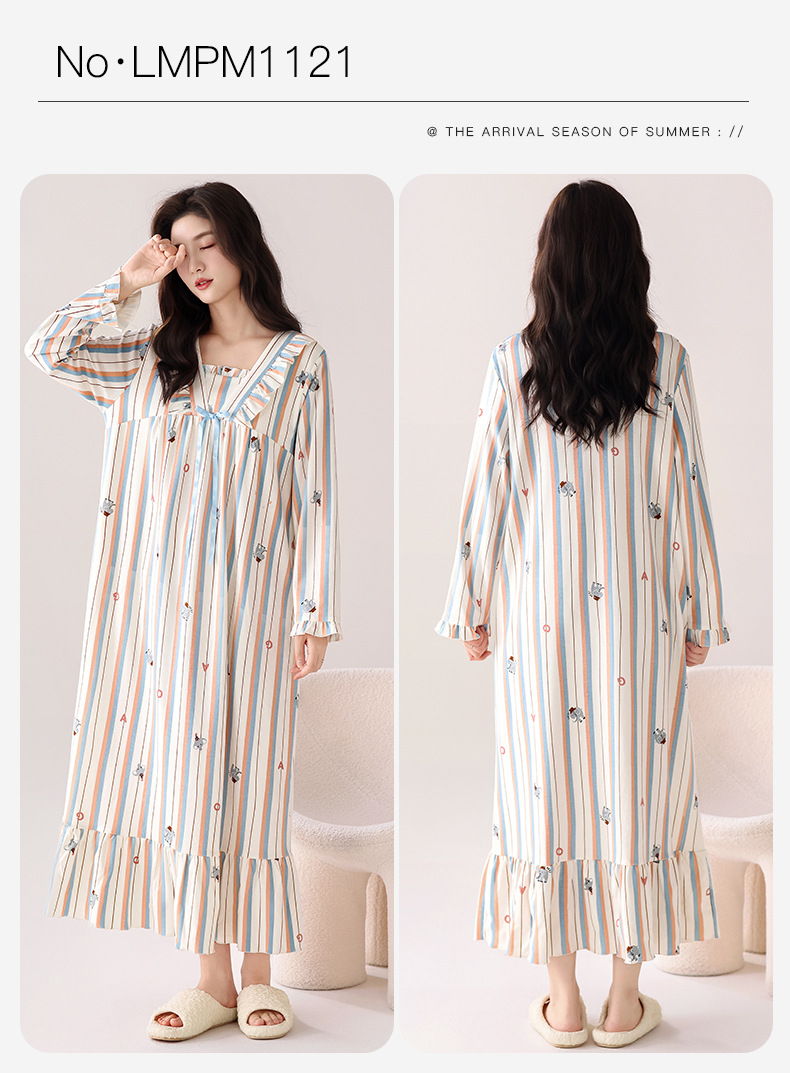 A类抗菌100%纯棉睡裙女士秋冬季长袖连衣裙女加大码全棉家居服女