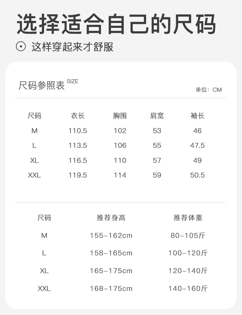 尺码 M(80-105斤),L(100-120斤),XL(120-140斤),XXL(140-160斤)