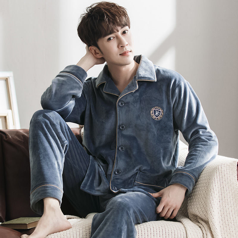 メーカー直販冬タイプの男性コーラルパイルは保温パジャマを厚くしてカジュアルでシンプルで、大きなサイズの家庭服を着ることができる