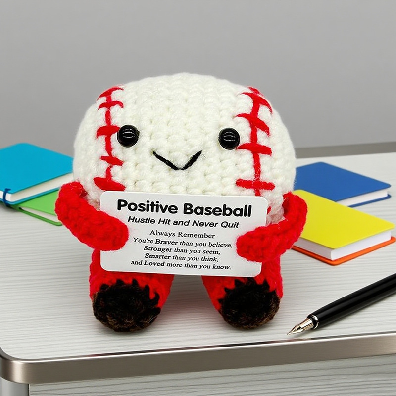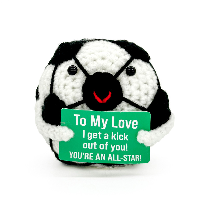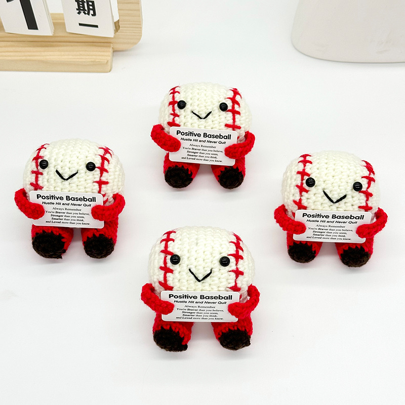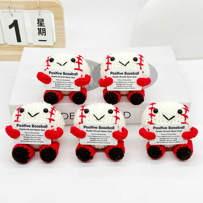 纯手工钩织新品棒球橄榄球抱卡足球玩偶微笑积极表情摆件桌面摆件
