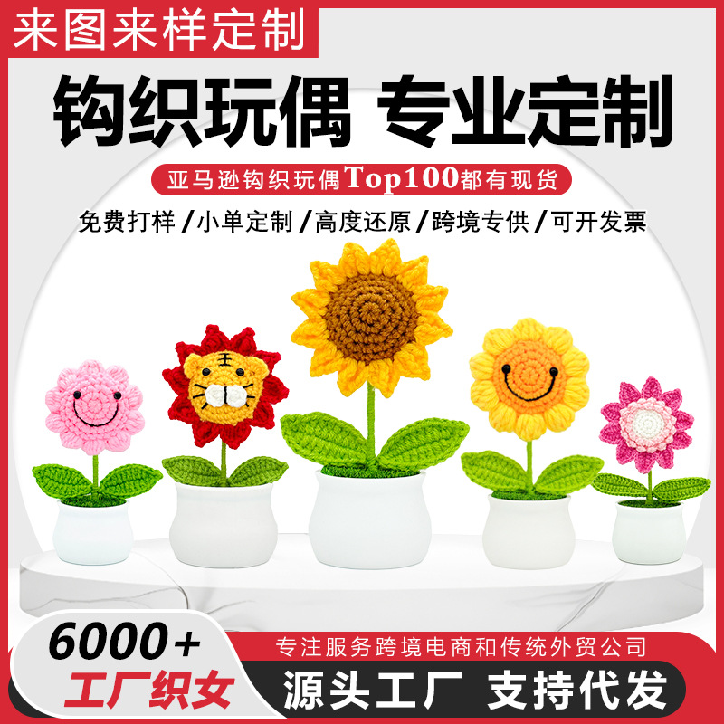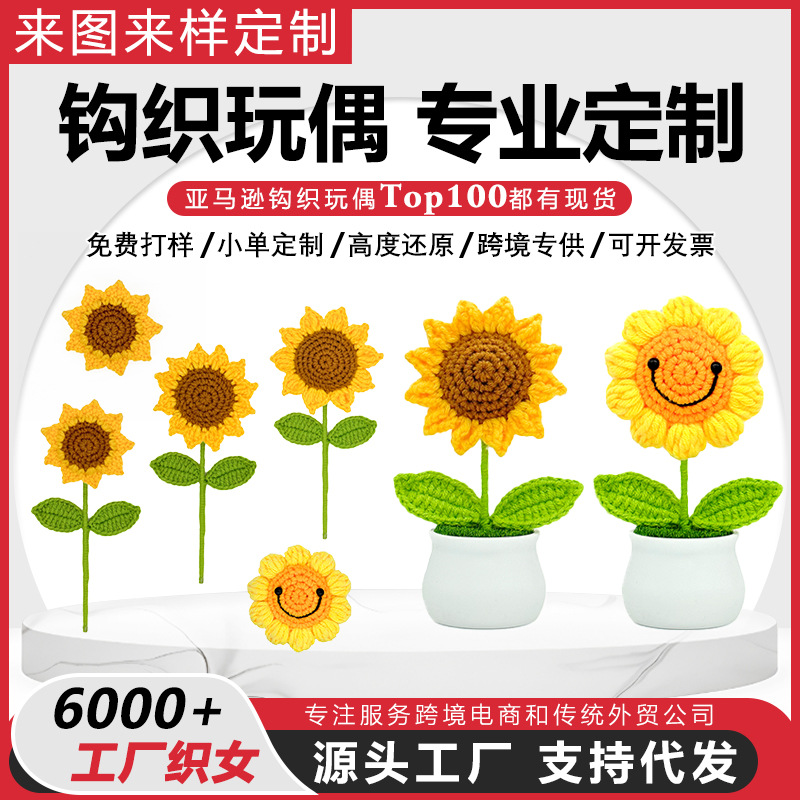 クロスボーダー手編みヒマワリの花の頭の半製品の毛糸のヒマワリの花束の完成品の手作業の教師の日のプレゼント