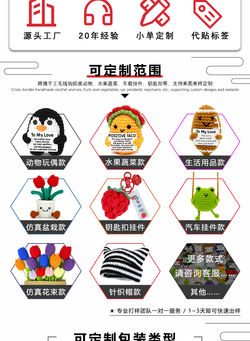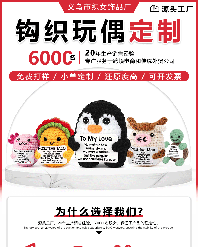 跨境毛线手工钩织新款正能量动物积极小猫爆款表情包手工编织成品
