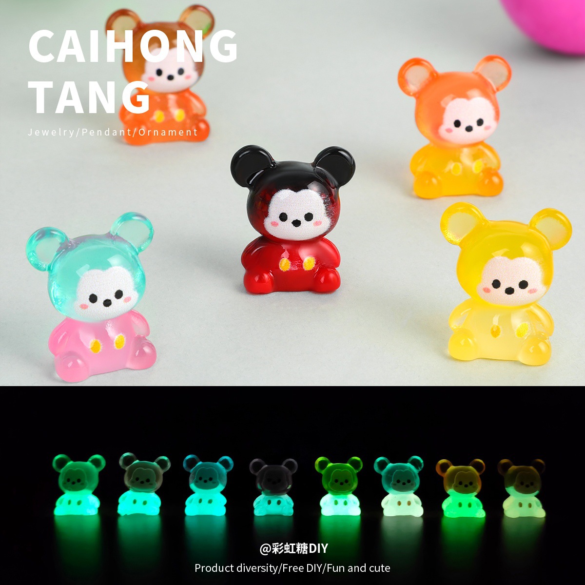 アニメDIYミニ夜光いちご熊樹脂創意手作りアクセサリー洞靴車載置物部品卸売り