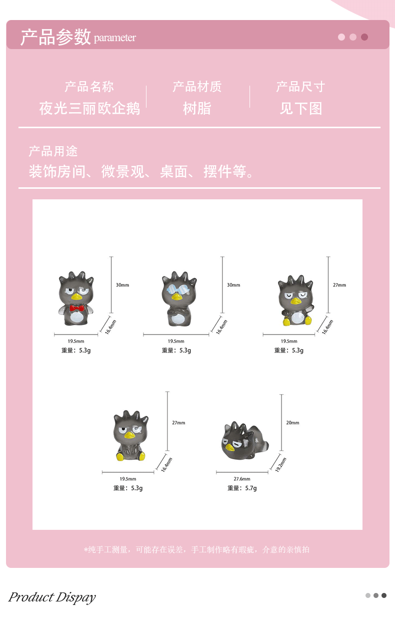 卡通立体可爱夜光三丽鸥酷企鹅 新品DIY饰品手机壳树脂配件摆件
