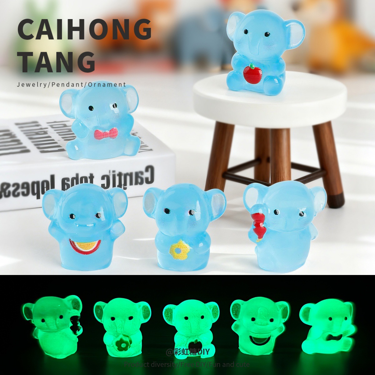 樹脂漫画発光かわいい象人形 DIY ジュエリーアクセサリークリエイティブホーム造園アクセサリーミックス卸売