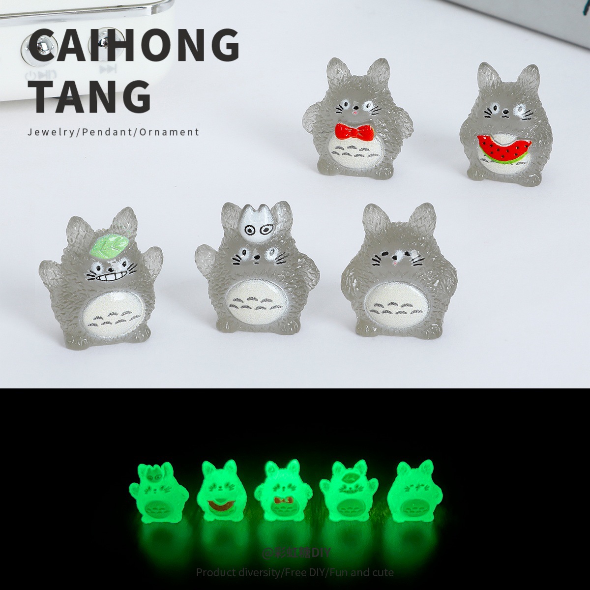微景观卡通夜光纹路龙猫摆件 diy饰品配件树脂工艺桌面车载小摆件