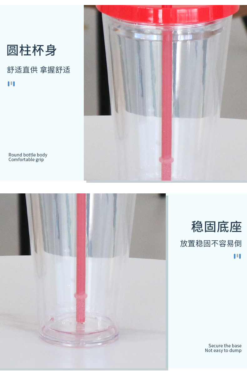 跨境创意粗吸管珍珠奶茶吸管杯DIY硅胶塞双层塑料杯时尚咖啡杯