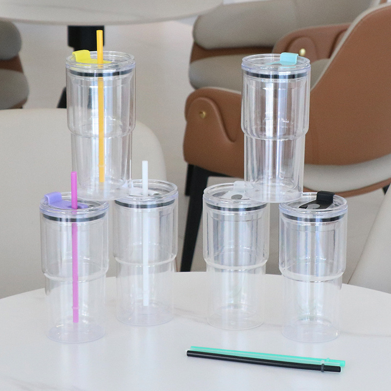 国境を越えたクリエイティブな透明ストローカップ、インスタ映えする個性的なPSグラデーション、学生やオフィス向けのコーヒー冷たい飲み物用ストローカップ