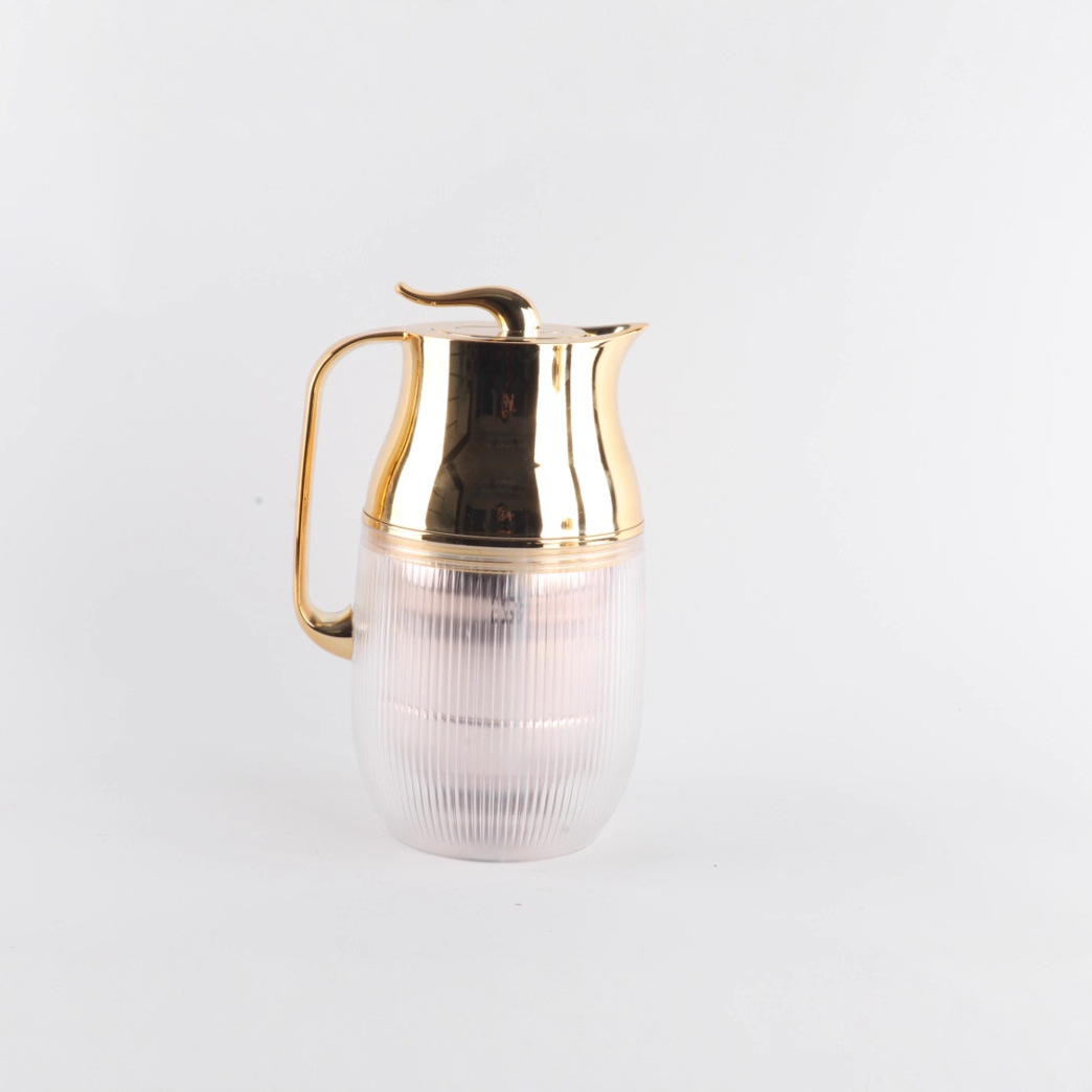 EJSHE クロスボーダー断熱ケトル ゴールデンヘッド 縦模様 ガラスライナー 熱湯ケトル 中東コーヒーポット アラビアンフラスク