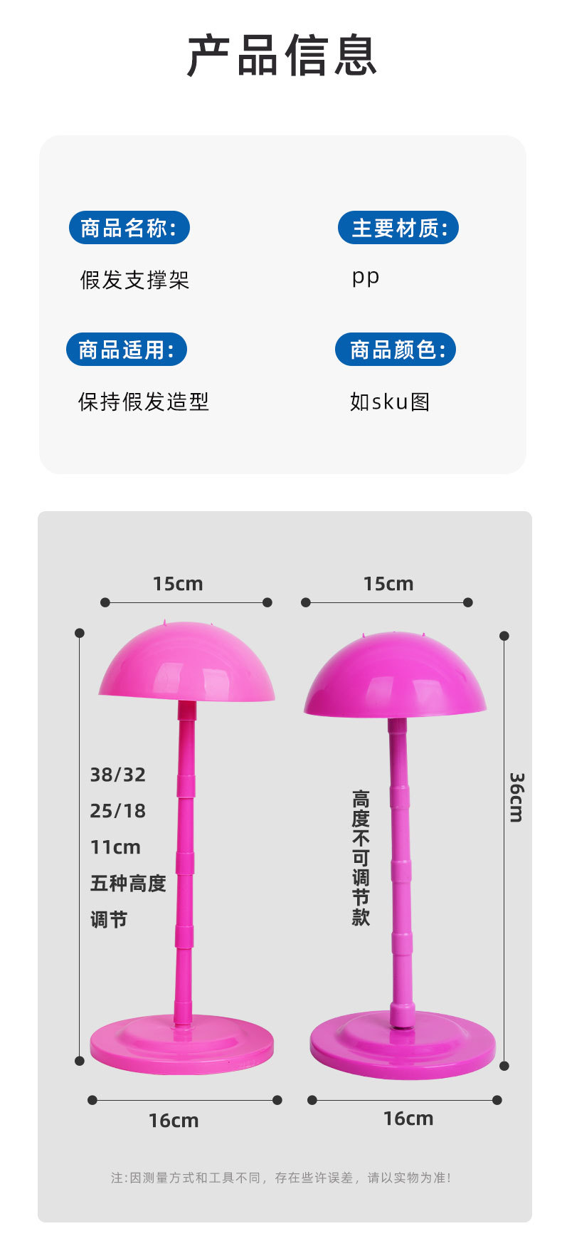 假发支架可调节高度拼接款可拆卸圆头蘑菇支架收纳蘑菇造型帽托