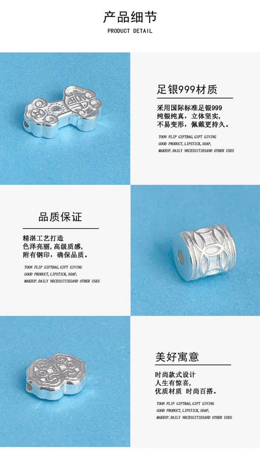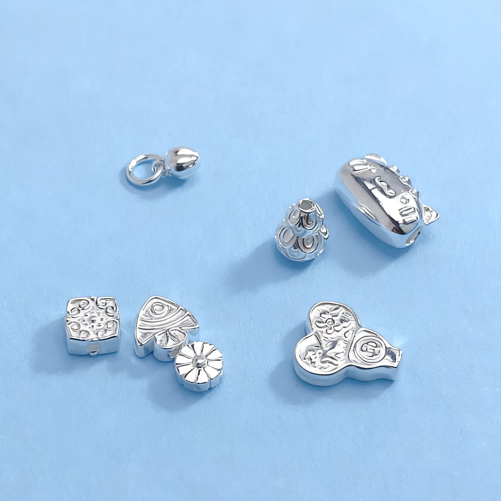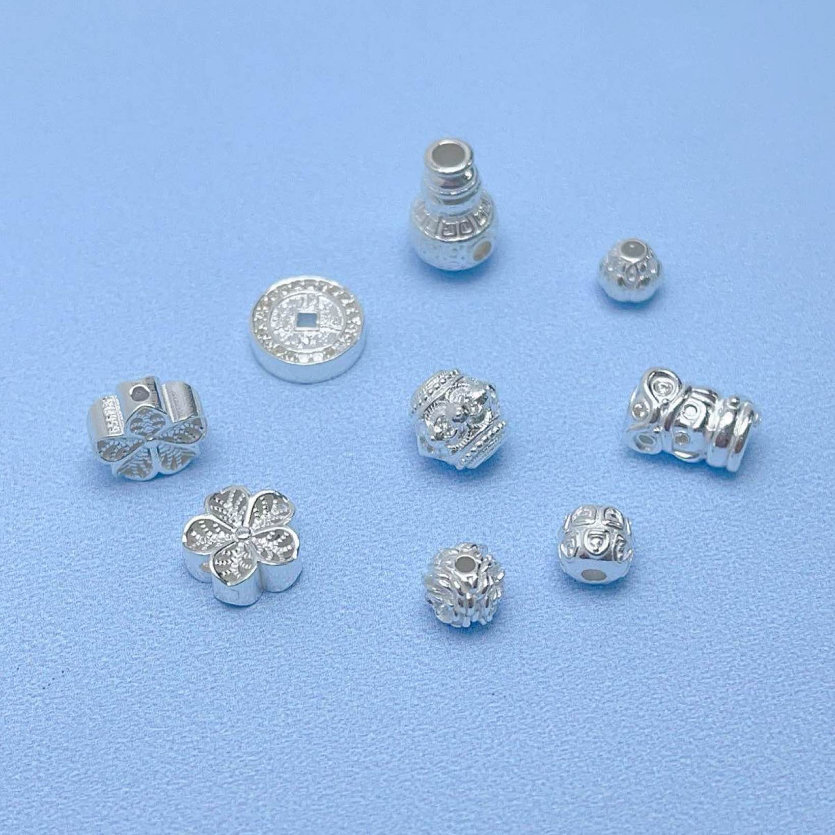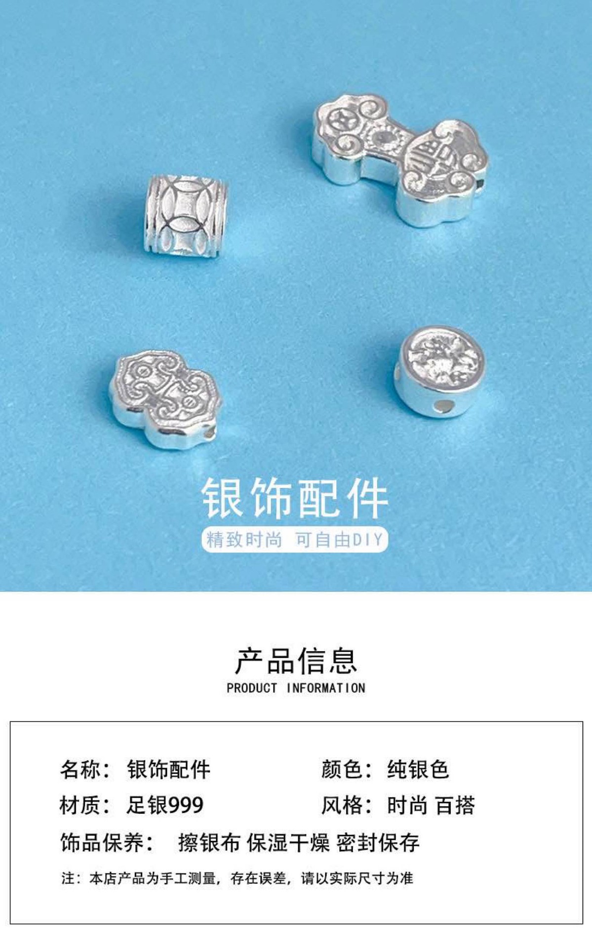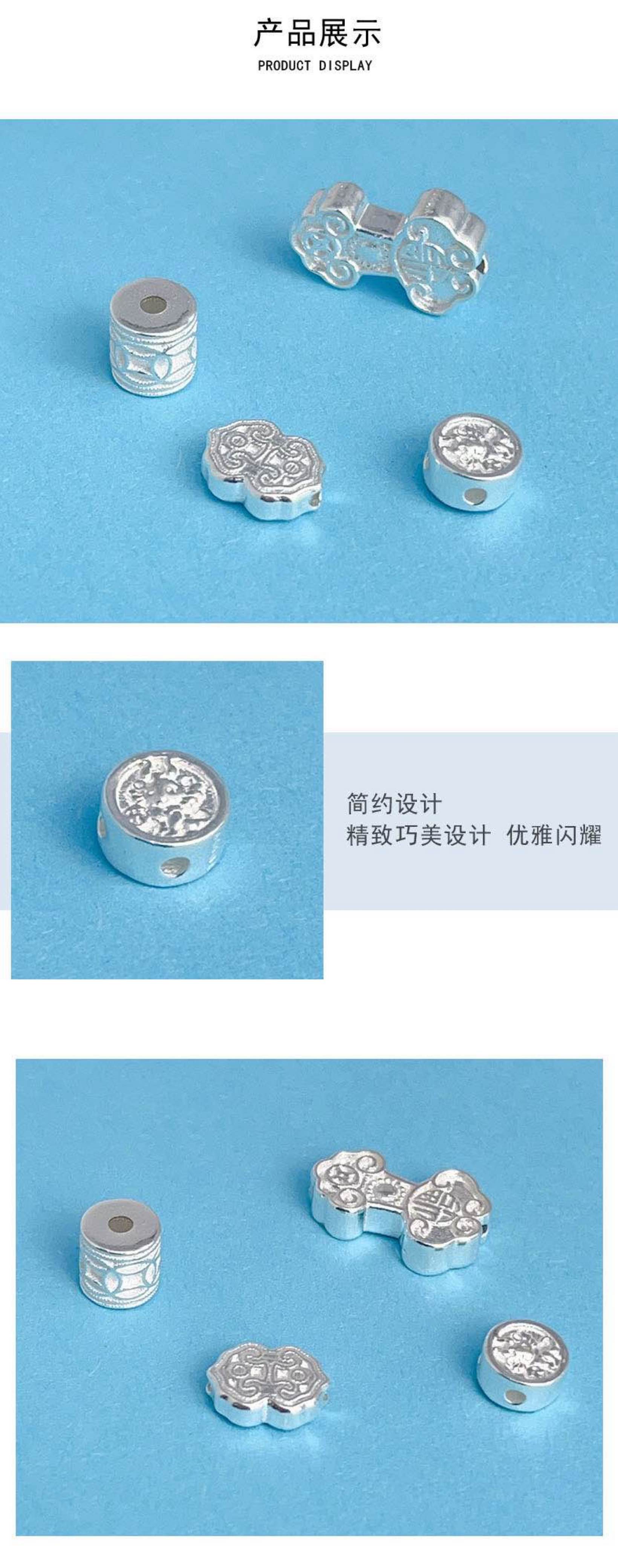 999足银DIY招财纳福祥云串珠饰品配件配饰新品吊坠挂饰隔珠隔片