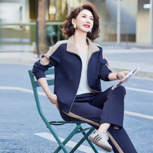 中年妈妈秋装运动服套装2025新款中老年外套女春秋大码休闲两件套