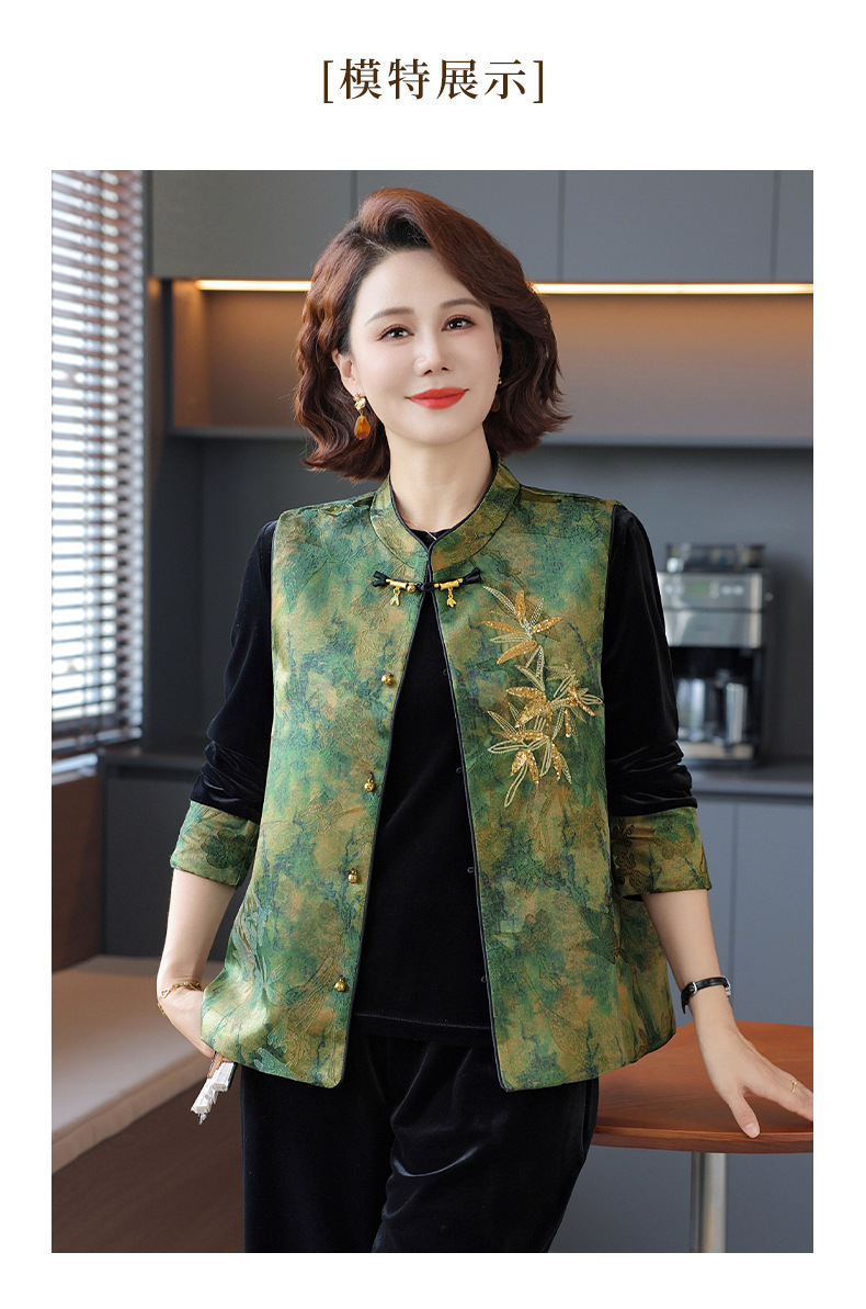 新中式妈妈套装2025秋新款金丝绒洋气中老年国风三件套马甲女装