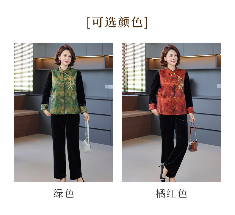 妈妈秋装新中式金丝绒套装喜婆婆中老年女装春秋国风马甲三件外套
