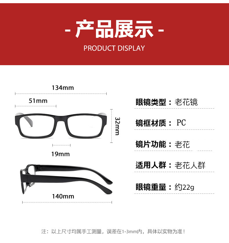 新型ブルーレイ防止老眼鏡大枠男女高精細老眼鏡老光鏡老視卸売り露店夜市