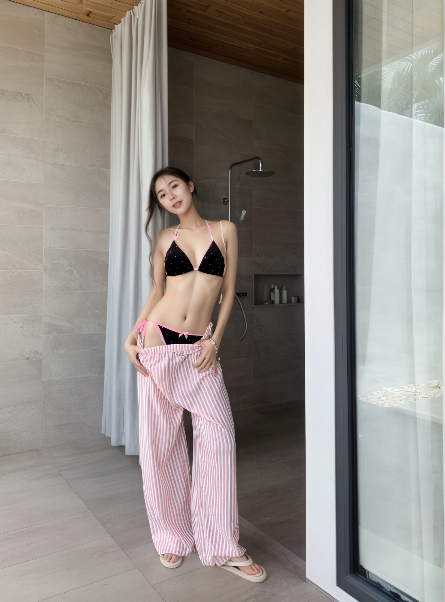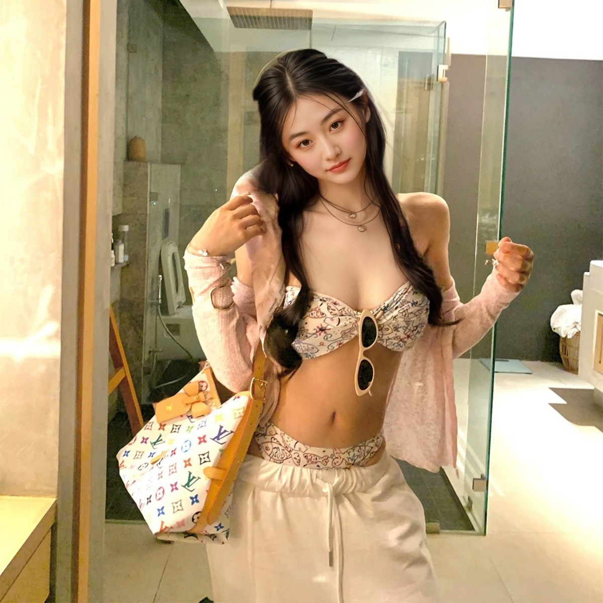 泰国度假旅行穿搭比基尼分体泳衣聚拢三点式带长裤套装温泉海边韩