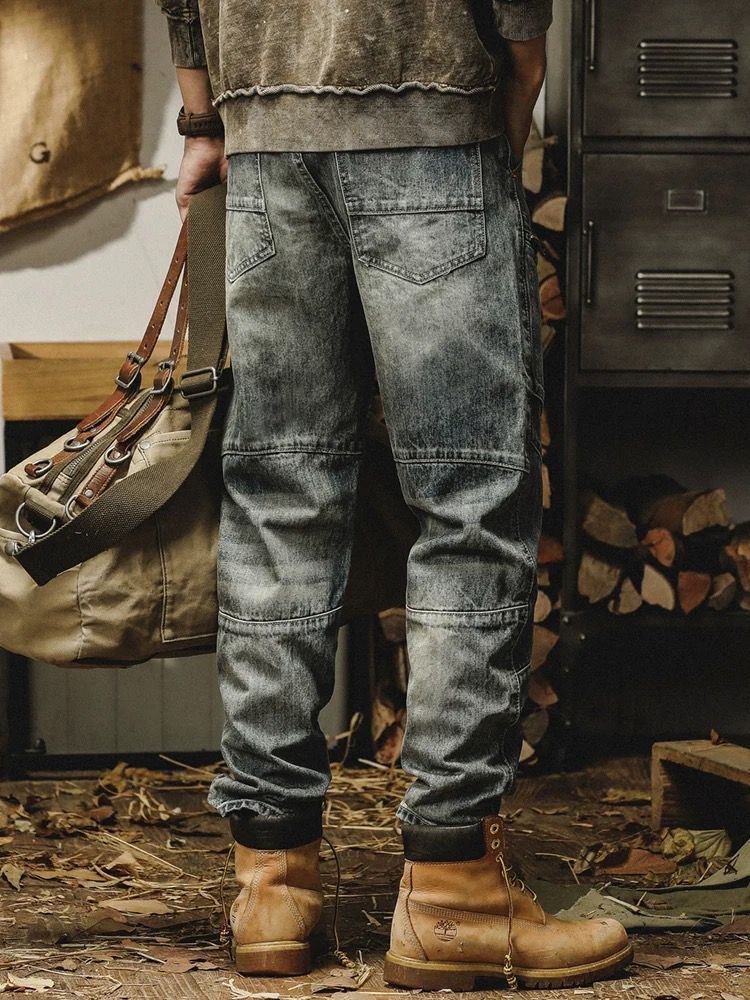 牛仔裤男美式重磅拼接工装2025新款潮牌痞帅宽松休闲百搭束脚裤子