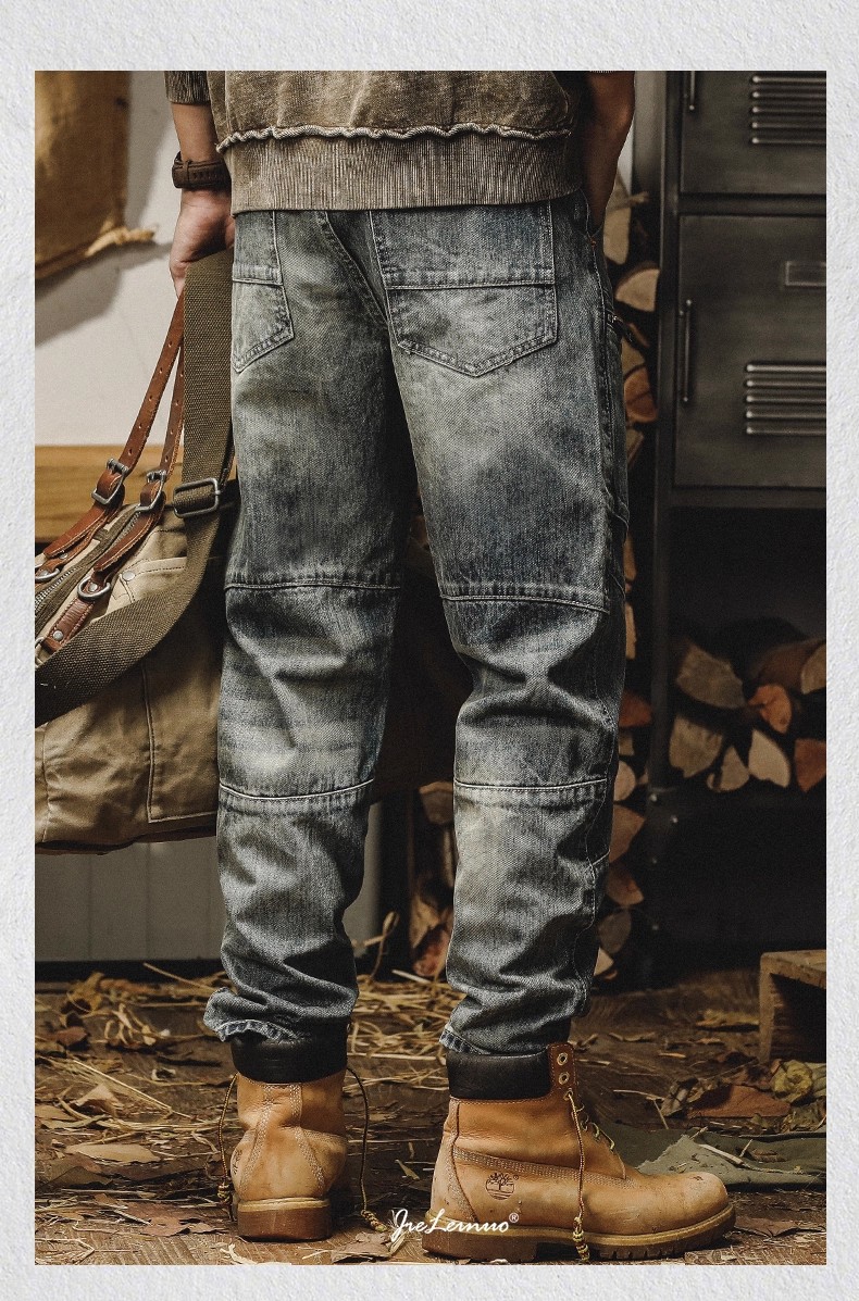 美式重磅复古牛仔裤男宽松直筒哈雷机车工装裤子男春秋款休闲长裤
