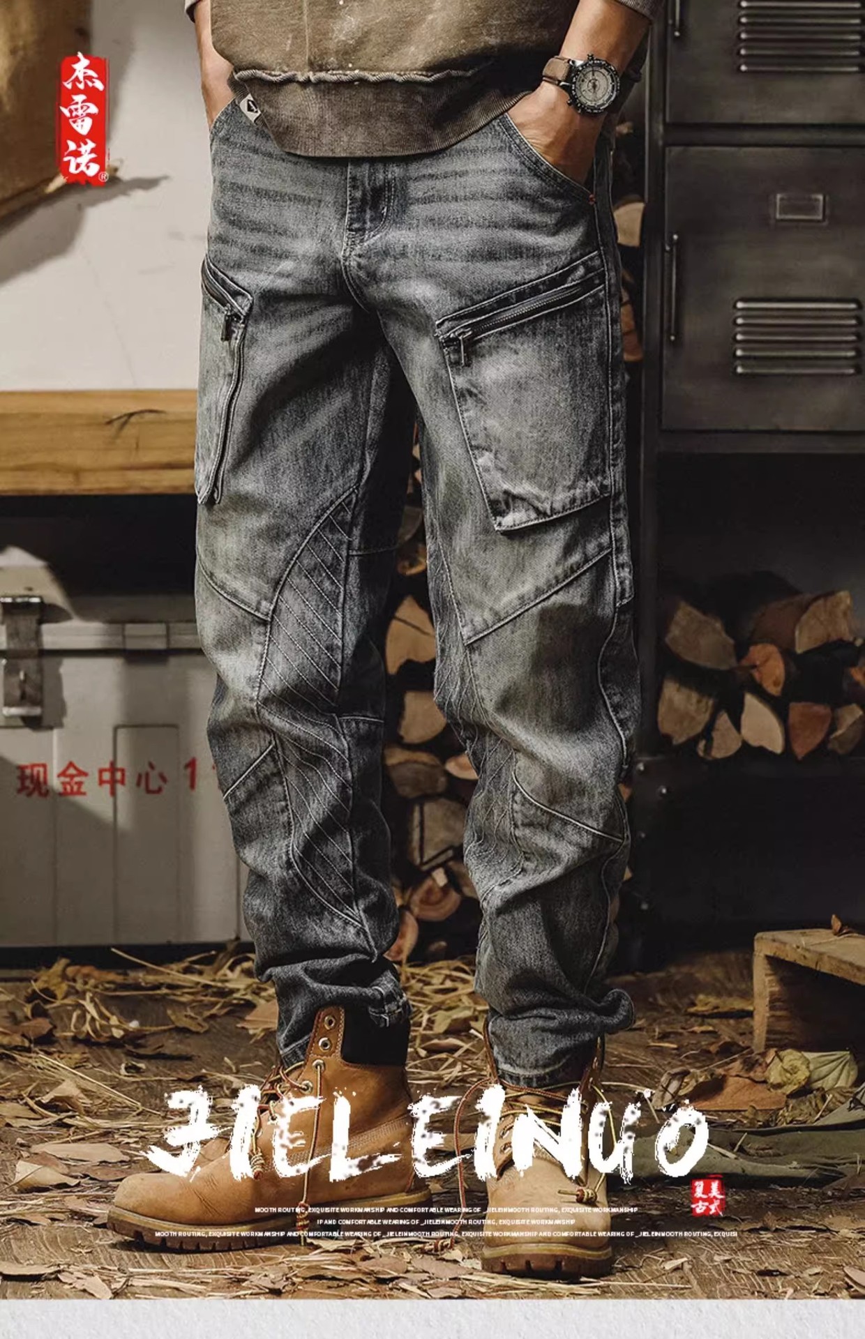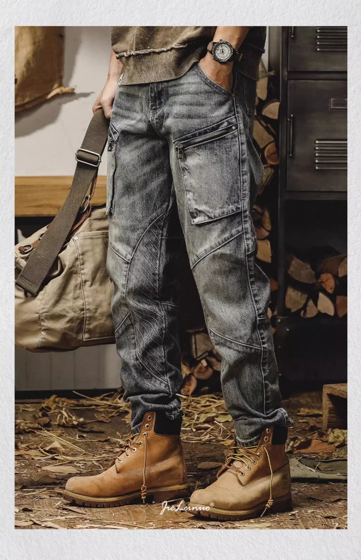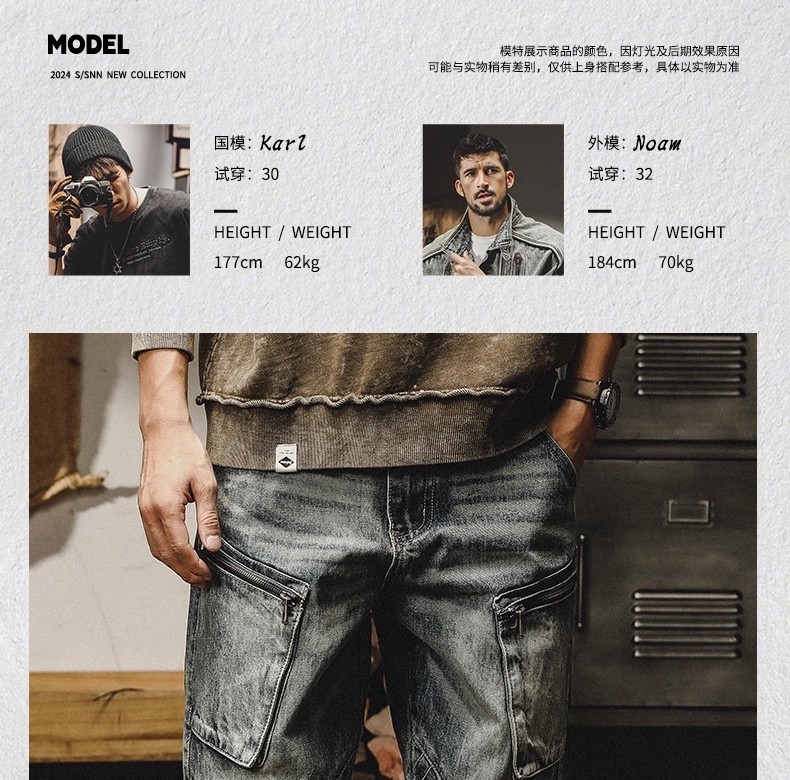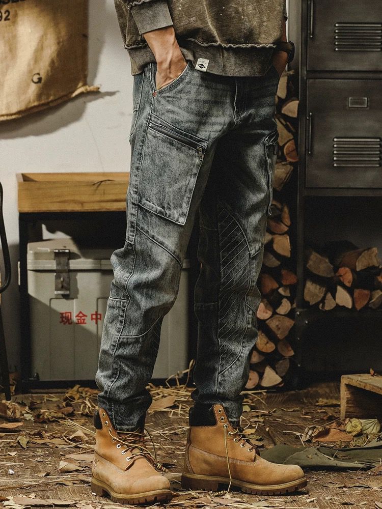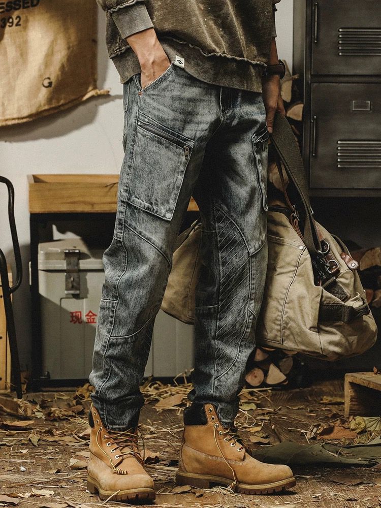 春秋工装牛仔裤男重磅水洗复古机能阔腿裤潮牌宽松休闲百搭束脚裤