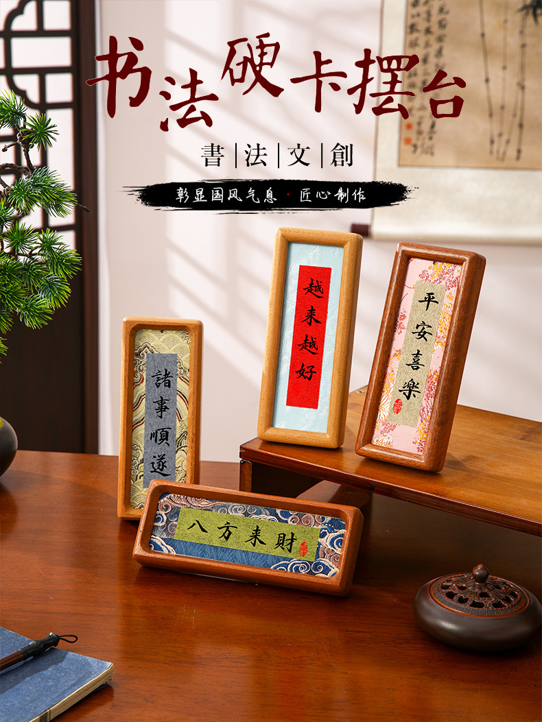 宋錦ハードカード書道ストリップデスクトップディスプレイフォトフレームテーブルクリエイティブ中国風書道と絵画フレームクリエイティブ無垢材フォトフレーム