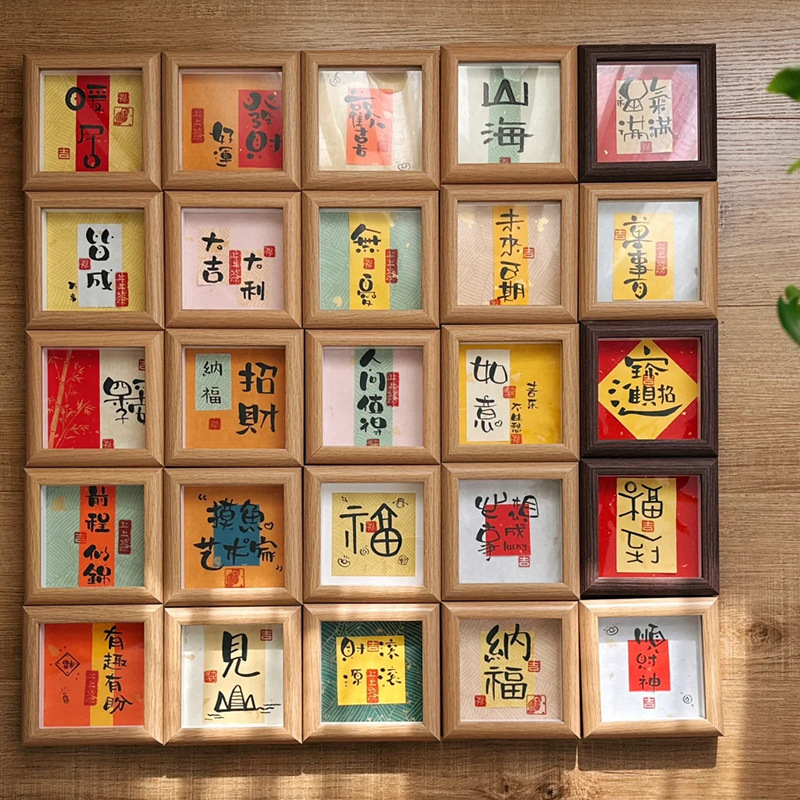 宋錦ミニ3インチフォトフレーム置物書道平安五福フォトフレームdiy展示フレーム創意玄関移転プレゼント