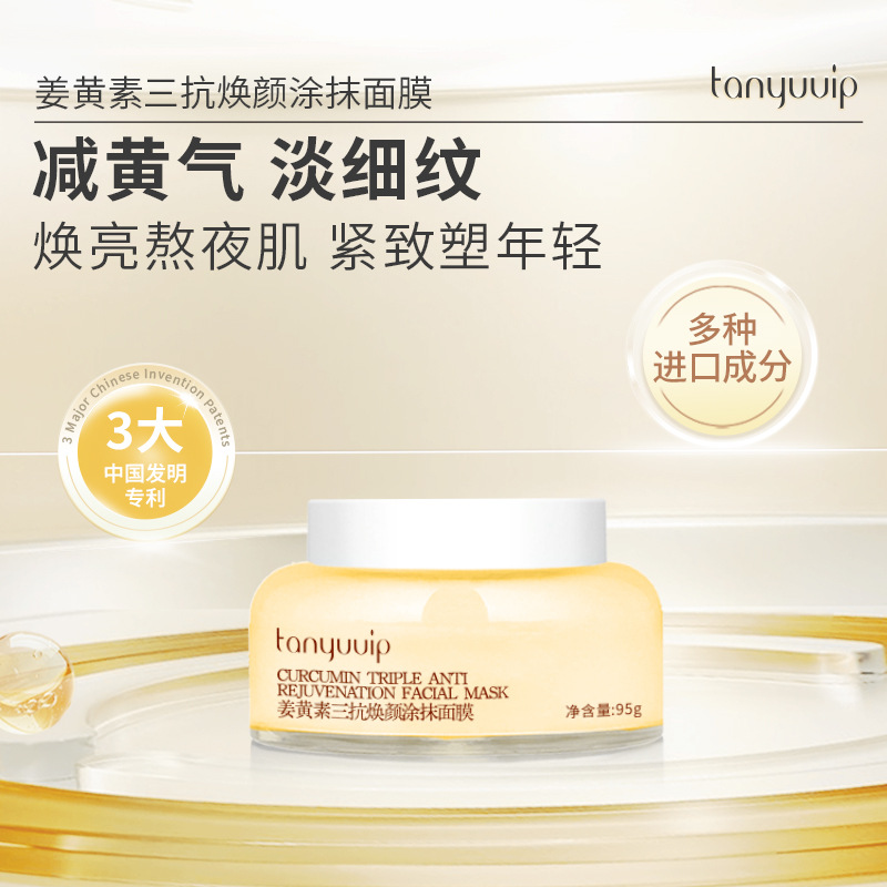檀雨姜黄素三抗焕颜涂抹面膜保湿提亮肤色熬夜急救补水面膜批发