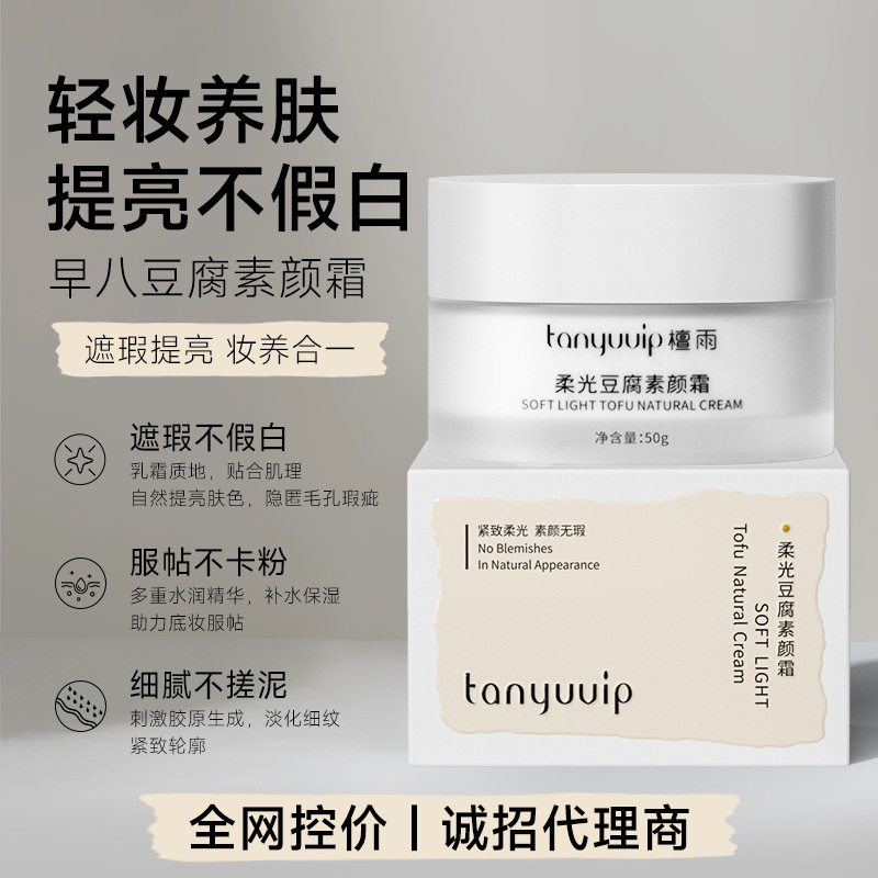 早八豆腐素颜霜保湿提亮不假白不卡粉养颜懒人学生裸妆遮瑕面霜女
